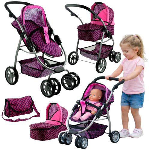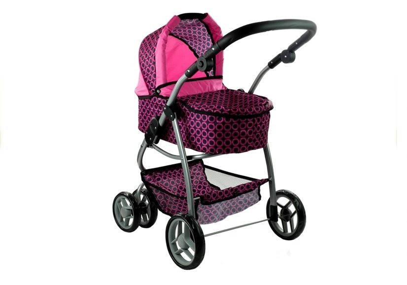 2 az 1-ben Alice babakocsi és babakocsi - Rózsaszín, fekete pöttyökkel   Sok lány imádja a babakocsikat és babakocsikat, amelyek lehetővé teszik számukra, hogy úgy viselkedjenek és játsszanak, mint az anyukájuk. Egyszerűen szeretnek olyanok lenni, mint az anyukájuk.  A kislányok imádják a babáikat gondozni.  Ez a tevékenység sok mókát és örömet okoz a lányoknak. Hogyan tehetjük még érdekesebbé? Válaszd a 2 az 1-ben Alice babakocsit és babakocsit, amelyek garantáltan nagyszerű szórakozást garantálnak.    A készlet tartalma: - 2 az 1-ben Alice babakocsi és babakocsi - Táska fekete pöttyökkel - Használati utasítás   Egy másik nagyszerű kiegészítő ehhez a modellhez a széles és mély anyagú rekesz a babakocsi alatt, ahol a gyermek nemcsak a szükséges kiegészítőket tarthatja, hanem egy szép táskát is, amelyben a babababa ruháit és a cumisüveget tarthatja.    A gyártó utasításai szerint ez a termék 3 év feletti gyermekek számára készült, és eredeti dobozban van csomagolva. A bemutatott termék tanúsított anyagból készült, és CE tanúsítvánnyal rendelkezik, amely igazolja a termék hosszú élettartamát és az Európai Uniós irányelvek összes követelményének való megfelelését.  Műszaki információk  2 az 1-ben babakocsi és Alice Méret: 83 x 45 x 70    Táska: 21,5 x 20 x 9  Kis kerék: 14 x 3  Nagy kerék: 16,5 x 3  Csomag mérete: 38,5 x 59 x 17,5