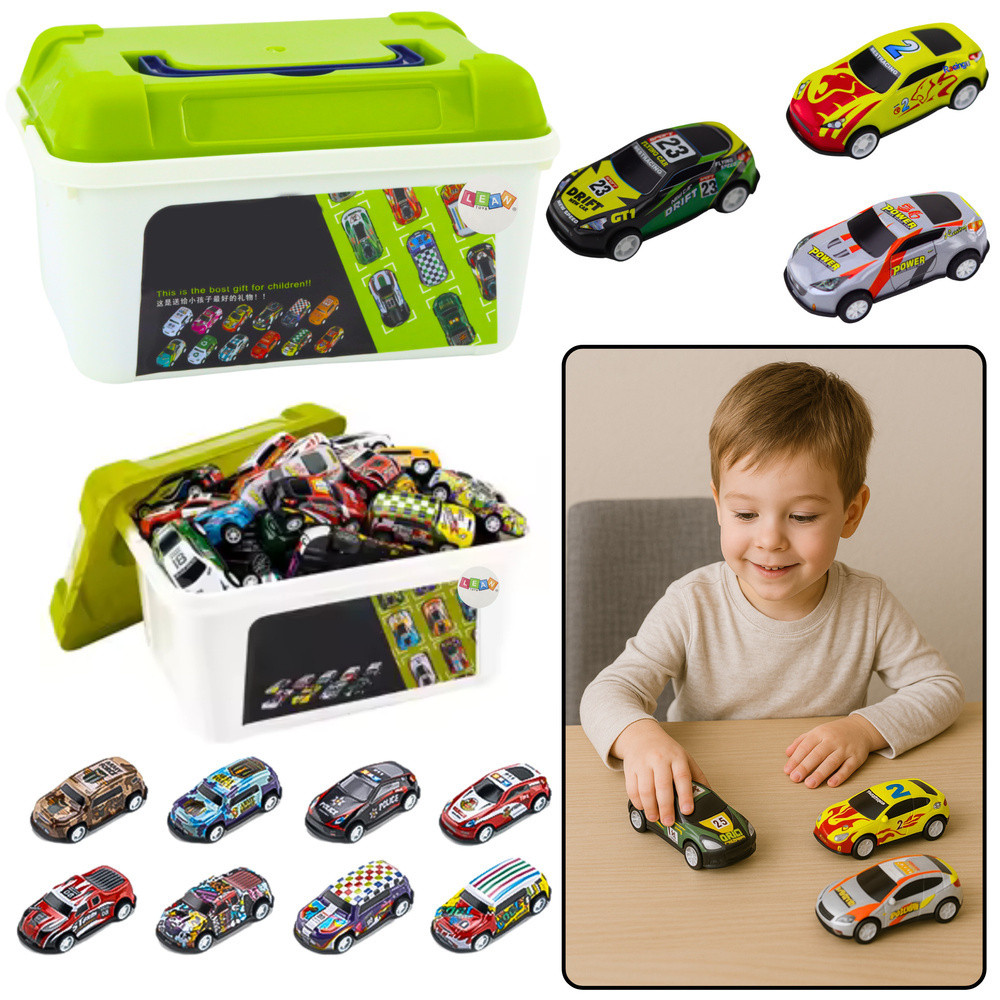 50 darabos autókészlet egy dobozban Tökéletes készlet a kis autórajongóknak Ez a nagyméretű, 50 darabos motoros versenyautó-készlet nemcsak fantasztikus játék, hanem a gyermekek fejlődését támogató eszköz is. Órákig tartó kreatív játékot és érzékszervi stimulációt kínál, így nagyszerű ajándék a fiatal autórajongóknak. Fejlődés és játékkreativitás: A gyerekek különböző forgatókönyveket és versenyeket képzelhetnek el, fejlesztve kreatív és történetmesélési készségeiket. Látás: A színes és változatos készlet segít fejleszteni a látást azáltal, hogy észreveszi a színek, formák és minták közötti különbségeket. Motoros fejlesztés: Az autók manipulálása, visszahúzása és elengedése, valamint a különböző felületeken való irányítása támogatja a finom- és durva motoros készségek fejlődését. Szociális készségek: A versenyek más gyerekekkel való játszása támogatja a szociális készségek, például az együttműködés, a kommunikáció és a problémamegoldás fejlődését. Praktikus és mobil csomagolás A tágas, fogantyús tok kényelmes megoldást kínál a járművek tárolására és szállítására. Kedvenc autóit bárhová magával viheti, ahová csak akar, anélkül, hogy aggódnia kellene az elvesztésük vagy sérülésük miatt. Készlet specifikációi Kor: 3 éves és idősebb gyermekek számára ajánlott. Anyagok: Fémből és műanyagból készült játék, amely biztosítja a szilárdságot és a tartósságot. Autó méretei: Kb. 6,8 x 3,3 x 2 cm (hosszúság x szélesség x magasság). Bőrönd méretei: 23,5 x 16,5 x 13,5 cm (hosszúság x szélesség x magasság). Biztonság: A játék biztonságos anyagokból készült, amelyek megfelelnek a gyermekjátékokra vonatkozó megfelelő biztonsági szabványoknak. A készlet tartalma 50 színes autó: Különböző mintákkal, sok szórakozást és lehetőséget biztosítva különféle forgatókönyvek létrehozására. Bőrönd/tok: Kényelmes fogantyúval, ideális a készlet tárolására és hordozására. Termékjellemzők Márka: Leantoys Jármű típusa: Készletek Csomagolás állapota: Eredeti Tökéletes ajándék A csomagtartóban található rugós készlet tökéletes ajándék, amely órákig tartó izgalmat és fejlesztő szórakozást nyújt gyermekének. Vidd magaddal, bárhová szeretnéd, és élvezd a felejthetetlen pillanatokat a kisautókkal! Válaszd rugós készletünket, hogy támogasd gyermeked fejlődését, és szerezz neki felejthetetlen pillanatokat tele szórakozással és tanulással!
