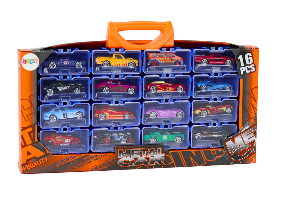 Rugós autókészlet fém bőröndben, 16 darabos. Ez a rugós autókészlet bőröndben tökéletes ajánlat a kis autórajongók számára. Ez a készlet 16 fém autót tartalmaz, mindegyik egyedi stílusú és színű. A megjelenés változatossága azt jelenti, hogy minden gyermek megtalálhatja kedvenc autóját, ami gazdagítja és változatossá teszi a szórakozást. Minden autó gondosan be van csomagolva egy praktikus bőröndbe, amely nemcsak esztétikus, hanem funkcionális is. A bőrönd masszív fogantyúval van felszerelve, így a gyermek könnyen magával viheti kedvenc játékait, bárhová is akar játszani. A bőrönd belseje válaszfalakat tartalmaz, amelyek biztosítják, hogy minden autónak meglegyen a saját helye. A válaszfalak zártak, ami megakadályozza, hogy az autók elmozduljanak szállítás közben. Ráadásul ezek a válaszfalak levehetők, ami lehetővé teszi a bőrönd szabad elrendezését és a gyermek igényeihez igazítását. Ez a bőröndben lévő játékautó-készlet nagyszerű megoldás azoknak a szülőknek, akik rendszerezni szeretnék gyermekeik játékait. A rekeszekkel ellátott bőröndnek köszönhetően minden autó mindig a helyén van, a gyermek pedig élvezheti a biztonságos és kényelmes tárolást és a kedvenc játékaihoz való könnyű hozzáférést. Ez a készlet nemcsak rengeteg szórakozást nyújt, hanem megtanítja gyermekedet a rendszerezésre is. Autó méretei: 8cm x 3,5cm Bőrönd méretei: 37cm x 23,5cm x 4,5cm A csomag mérete: 43cm x 26,5cm x 5cm CE tanúsítvánnyal rendelkezik és megfelel az EN71 szabványnak. 3 év feletti gyermekek számára készült.