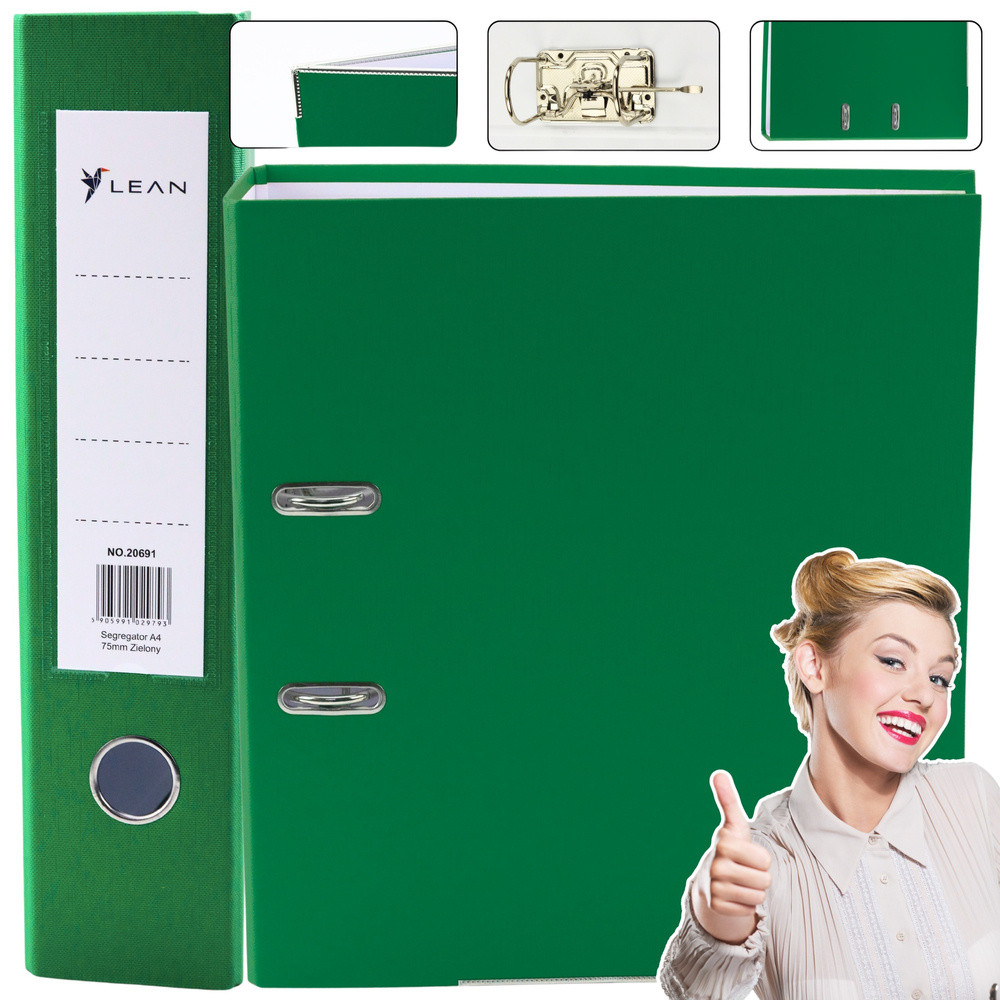 A4-es irattartó mappa/75 mm-es emelőkaros mechanizmus, zöldAz elegáns, élénk zöld színben pompázó, széles, 75 mm-es gerincű A4-es irattartó ideális dokumentumok tárolására irodában, otthon és iskolai anyagok rendszerezésére. Ez a tágas mappa akár 500 lapot is képes befogadni (80 g/m² súlyú), így nagyszerű megoldás számlák, szerződések, jelentések és egyéb fontos dokumentumok archiválására. A kiváló minőségű konstrukció biztosítja a mappa megbízhatóságát és tartósságát. Termékelőnyök Tartós anyag: A mappa 2 mm vastag és 1200 g/m² súlyú, strapabíró kartonból készült, amely nagy ellenállást biztosít a mindennapi használattal szemben. Masszív konstrukció: Az erősítő alsó csík tovább növeli a mappa tartósságát, lehetővé téve a hosszú távú, látható kopásjelek nélküli használatot. Nikkelezett emelőszerkezet: A kiváló minőségű emelőszerkezet lehetővé teszi a lapok sima behelyezését és eltávolítását, a fém szerelvények pedig korrózióállóak. Praktikus méretek: 75x320x285 mm méreteivel a mappa tökéletesen illeszkedik a szabványos polcokba, könyvespolcokba és irodai szekrényekbe, lehetővé téve a dokumentumok kényelmes rendszerezését bármilyen térben. Biztonság és ökológia: A CE tanúsítvány igazolja az európai minőségi és biztonsági szabványoknak való megfelelést, és a mappa környezetbarát, újrahasznosítható anyagokból készült. Specifikáció Formátum: A4 Gerinc szélessége: 75 mm Szín: Zöld Anyag: 2 mm vastag és 1200 g/m² súlyú karton Kapacitás: Akár 500 lap (80 g/m²)Mechanizmus: Nikkelezett emelőkaros mechanizmusMéretek: 75x320x285 mmTanúsítvány: CEIdeális választás irodai dokumentumok archiválásáraDokumentumok otthoni tárolásáraIskolai és irodai anyagok rendszerezéséreIntenzív használatra irodai környezetbenAz A4-es mappa nélkülözhetetlen kiegészítő, amely segít az összes fontos dokumentum és papír egyszerű és gyors rendszerezésében és válogatásában. Masszív mechanizmusával és modern zöld dizájnjával ez a mappa karaktert kölcsönöz bármilyen irodai vagy otthoni környezetnek.