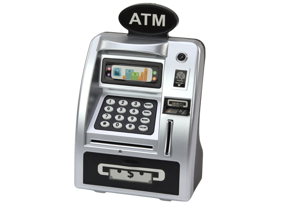 ATM malacpersely gyerekeknek, akik megtanulnak spórolni ezüstfekete
