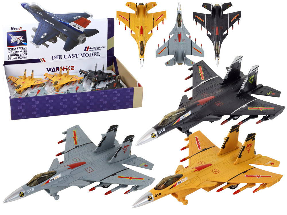 Repülőgépmodell súrlódóhajtással, szürke, fekete vagy sárga színben Ezek a lenyűgöző vadászgépmodellek két elegáns színben kaphatók - szürke, fekete vagy sárga. Egyedi kialakításuk nemcsak eleganciát, hanem büszkeséget és erőt is tükröz, ami játékként és dekorációként is egyedivé teszi őket. Azonban nem csak a megjelenés vonzza a figyelmet. Vadászgépeink fejlett részleges meghajtással vannak felszerelve, amely lenyűgöző lendületet és felszállási érzést tesz lehetővé, így szinte azonosak a valódi repülőgépekkel. Játék közben felejthetetlen hangeffektusokat élvezhet, amelyek a motorhangokat utánozzák, és fényeffektusokat, amelyek realizmust adnak. További előny a szárnyak nyitásának és zárásának képessége, amely lehetővé teszi, hogy a modellt játék közben különböző helyzetekhez és élményekhez igazítsa. Vadászgépeink könnyen kezelhetők, ami azt jelenti, hogy mind a gyermekek, mind a felnőttek nehézségek nélkül élvezhetik őket. A tartós anyag biztosítja, hogy a modellek ellenálljanak a sérüléseknek, és hosszú ideig megőrzik kiváló tulajdonságaikat. Ez több, mint egy játék - ez az aerodinamika alapjainak és a repülési elveknek az oktatás forrása. Vadászgépeink szórakoztató és tanulási élményeket egyaránt nyújtanak, serkentik az intellektuális fejlődést és segítenek megérteni a repülés világát. Ha dinamikus repülésekről álmodozol egy olyan vadászgéppel, amely nemcsak szép, hanem realisztikus élményeket is nyújt, modelljeink megfelelnek az elvárásaidnak. Tökéletes ajándékok is minden repülés- és technológiarajongó számára. Rendeld meg most, és éld át a repülési kalandok felejthetetlen pillanatait otthonodban! 6 darab a csomagban. A repülőgépek külön kaphatók. A csomag mérete: 48cm x 34,5 x 8,5cm. A repülőgép méretei: 22cm x 14,5cm x 5,5cm. CE tanúsítvánnyal rendelkezik és megfelel az EN71 szabványnak. 3 év feletti gyermekek számára készült.