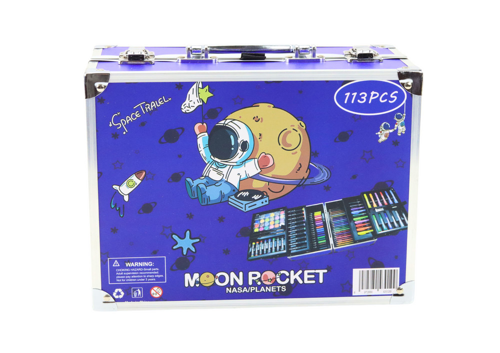 Összecsukható bőröndben kihelyezett, 133 darabos ElArt készlet, összecsukható, űr motívummal díszített bőröndben. Ideális ajándék minden kis művész számára, amely elrepíti őket a képzelet és a kreativitás világába! A készlet akár 133 különböző elemet is tartalmaz, amelyek lehetővé teszik gyermeked számára, hogy különböző festési és rajzolási technikákat próbáljon ki. Találsz benne akrilfilceket, kétoldalas filctollokat és kétoldalas filctollokat, amelyek ötvözik a vékony és vastag hegy funkcionalitását, így precíz részleteket és nagyobb felületeket is rajzolhatsz. Ceruzák, pasztellkréták és olajpasztellok, festékek, két ecset, radír, hegyező és egy kifestőkönyves jegyzetfüzet, amelyek sok órányi kreatív szórakozást nyújtanak. Mindez elfér egy praktikus, összecsukható bőröndben, amely nemcsak a tárolást és a szállítást könnyíti meg, hanem arra is ösztönzi, hogy minden kreatív foglalkozás után rendszerezd a művészi eszközeidet. Az űr motívummal ellátott bőrönd nemcsak esztétikus csomagolás, hanem praktikus kiegészítő is, amelyet könnyen magaddal vihetsz kirándulásra vagy művészeti órákra. Kompakt méretének és kényelmes fogantyújának köszönhetően a gyermek bárhová magával viheti a művészkészletét, hogy gyönyörű alkotásokat alkosson. Ez a sokoldalú művészkészlet támogatja a kézügyesség és a képzelet fejlődését. Az összecsukott bőrönd méretei: 27,5 cm x 21 cm x 14 cm. A kibontott bőrönd méretei: 77 cm x 27,5 cm x 12,5 cm. A csomagolás méretei: 28 cm x 22 cm x 15 cm. CE tanúsítvánnyal rendelkezik, és megfelel az EN71 szabványnak is. 3 év feletti gyermekek számára készült.
