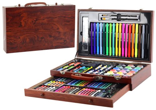Művészeti készlet fa bőröndben 123 elem