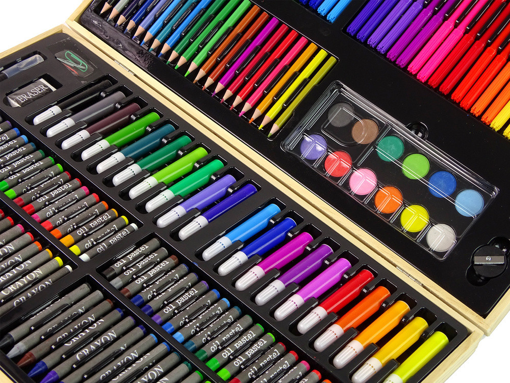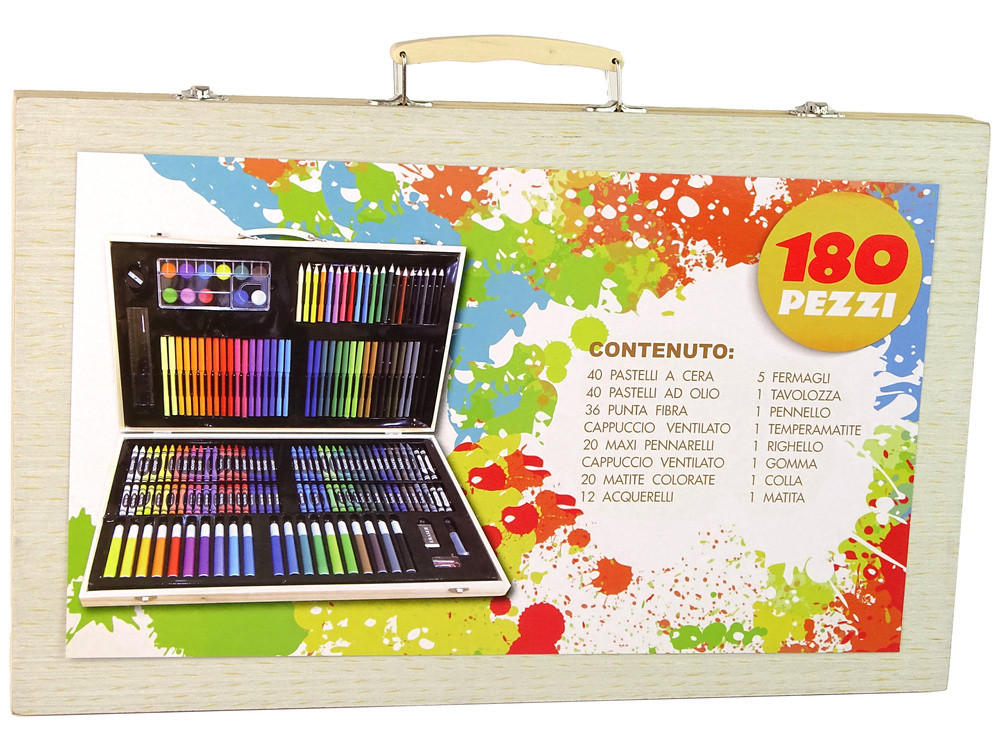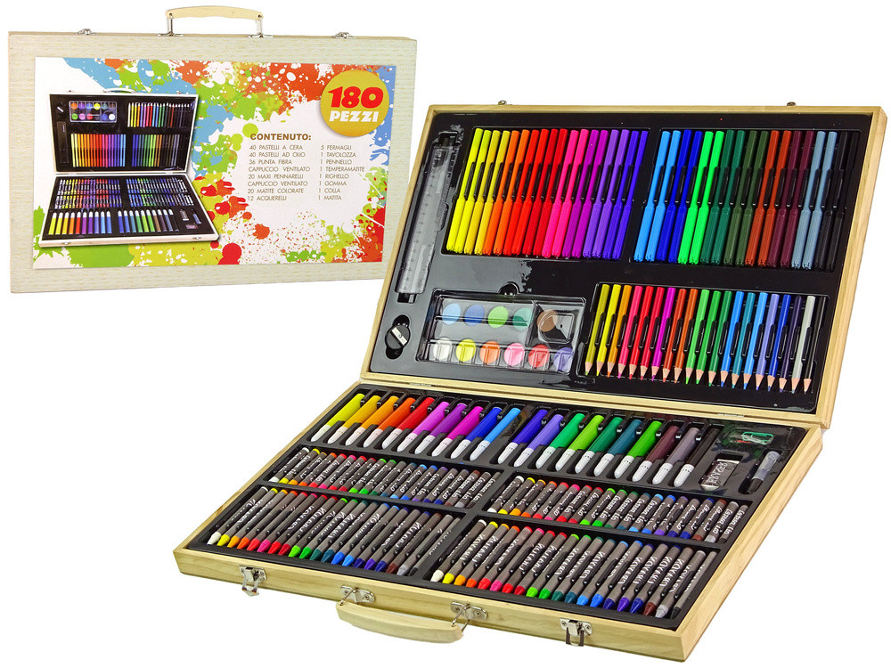 Művészi festőkészlet, fa bőrönd, 180 darabos
