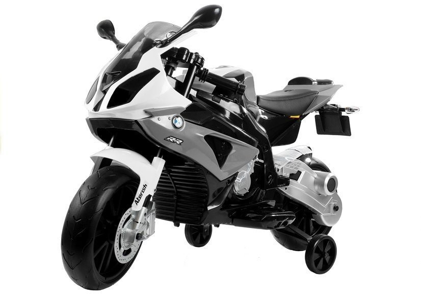 BMW S1000RR Ezüst - Elektromos motorkerékpár  Mostantól gyermekednek is lehet saját motorja! Váltsd valóra kisgyermeked álmát egy kényelmes, szemet gyönyörködtető ezüst foglalatban található BMW S1000RR motorkerékpárral. Fejleszd ki gyermeked szenvedélyét már most, amelyet a jövőben együtt megoszthattok, és együtt leküzdhetitek a széles utakat. Hadd érezze az önvezetés örömét és szabadságát! Egy akkumulátoros gyermekjármű úgy néz ki, mint egy igazi motorkerékpár - azzal a különbséggel, hogy több éves gyermek számára készült. A kiváló minőségű anyagokból készült, masszív és erős konstrukció biztosítja a folyamatos szórakozást évekig. A BMW S1000RR motorkerékpár modern stílusban készült, amely nemcsak az autós játékok legfiatalabb rajongóinak, hanem szüleik ízlését is kielégíti. A legkisebb hüvelykben is kifinomult belső tér és a valódi alkatrészeket utánzó elemek igazi motorkerékpár-érzetet biztosítanak gyermekednek. A BMW S1000RR játékautó 3 év feletti gyermekek számára készült, de felügyelet mellett a fiatalabb vezetők is használhatják. A bemutatott akkumulátoros autó C E tanúsítvánnyal rendelkezik, összeszerelése rendkívül egyszerű és gyors - körülbelül 30 percet vesz igénybe. ÁLTALÁNOS INFORMÁCIÓK Járműmodell BMW S1000RR Szín Ezüst MŰSZAKI ADATOK Motor 1x 45 W-os akkumulátor 12 V 7 Ah Sebességfokozatok 2 előre és 2 hátra (lassú és gyors üzemmód) Kerekek EVA kerekek a magas szintű kényelemért Autó mérete 100 cm x 28 cm x 68 cm Kerékátmérő 30 cm Sebesség 2-4 km/h (1. sebességfokozat); 4-6 km/h (2. sebességfokozat) Saját tömeg 15 kg Max. Teherbírás 30 kg Töltési idő 8-12 óra Vezetési idő ~1 óra Egyéb  elektromos fék működik a gázpedál felengedése után FELSZERELÉS Biztonsági övek Nyitható ajtó Kulcsok Távirányító   Világítás első és hátsó LED lámpák Hang  hanggombok a kormánykeréken Ülés alakú, puha bőr ülés Audio kürt, hangok és dallamok Króm elemek Egyéb ● elektromos fék     TOVÁBBI INFORMÁCIÓK Ajánlott életkor 3+ Tanúsítvány CE, EN tanúsítvánnyal rendelkezik