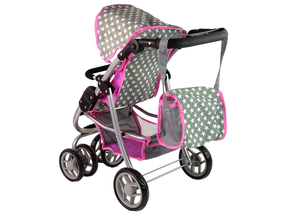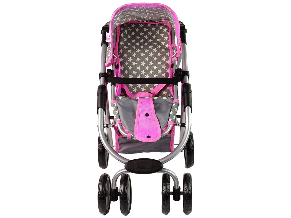 Baby Doll babakocsi 2 az 1-ben mózeskosár Rózsaszín Csillagok Ez a babakocsi ideális játék azoknak a lányoknak, akik vigyázni szeretnének a babáikra. A divatos színek és grafikák játékra ösztönzik a gyerekeket. Változatosságot visz a játszóházba, így minden lány anyukának érezheti magát, és időt tölthet a babájával. Felébreszti a törődést és az aggodalmat, és pozitívan befolyásolja a gyermek fejlődését. Megtanítja az interperszonális kommunikáció, az empátia és a másik lény iránti felelősségvállalás alapelveit. Séta közben magával viheti a babakocsit és a babát is. A táskás babakocsi szürke színű, fehér csillagokkal, ami sok bájt kölcsönöz neki. A dizájn hasonlít az igazi megfelelőjére, ami realizmust kölcsönöz. A szerkezet tömör és strapabíró ezüst színű alumíniumcsövekből készült, amelyeket fekete műanyag csatlakozók kötnek össze. A kocsihoz használt kiváló minőségű műanyag felelős a játék kényelméért, az első kerekek pedig sokkal könnyebben kezelhetővé és irányíthatóvá teszik a kocsit. Ideális kiegészítője az otthoni játékidőnek. Társaikkal együtt tölthetik szabadidejüket. Egy körülbelül 40 cm-es baba elfér a babakocsiban. Minden gondoskodó és figyelmes anyuka élvezheti a babájával töltött időt. A babakocsi alatt található tépőzáras táska és kosár megkönnyíti a játékhoz szükséges tárgyak, például babaruhák vagy cumisüveg tárolását és szállítását. A mózeskosár kényelmes fogantyúval és összecsukható tetővel rendelkezik. A mózeskosár levehető a babakocsiról, és külön is játszható vele. A babakocsi legnagyobb előnye, hogy 2 az 1-ben funkcióval rendelkezik: normál babakocsiként vagy babakocsiként is használható. Sok lehetőség van rá. A babakocsi ezenkívül pántokkal is rendelkezik, így a baba nem esik ki a babakocsiból. A babakocsi cseréjéhez és összecsukásához útmutató található. A modell hárompontos biztonsági övvel, ülésállítással, összecsukható tetővel, esésvédelemmel és a babakocsi fogantyújának magasságállításával rendelkezik. A szett elemei: - babakocsitáska - mózeskosár - babakocsi - használati útmutató Babakocsi méretei: hosszúság 50 cm szélesség 38 cm magasság 60 cm Kerékátmérő: 14 cm Ülésmélység: 10 cm Ülésmagasság: 30 cm Táska: 22 cm x 18 cm Mózeskosár: 48 cm x 22 cm Kupola magassága: 25 cm Csomag méretei: 55 cm x 34 cm x 18 cm 3 év feletti gyermekek számára alkalmas. Megfelel az EN71 szabványnak. A játék tanúsított anyagból készült, ami műanyag, amely ellenáll a gyakori használatnak.