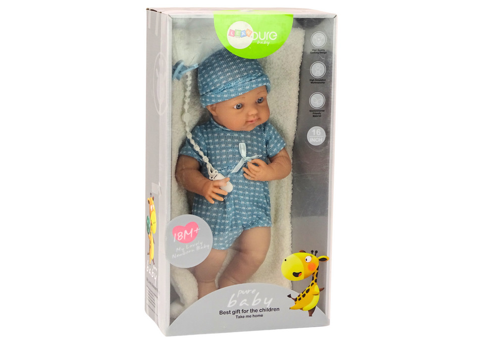 Kék ruhás baba, sapka, cumi és takaró A kék ruhás baba több mint egy játék - egy társ, amely bevezeti a gyerekeket a képzelet és a gondoskodó kalandok varázslatos világába. Bájos rózsaszín bodyja masnival és a hozzá illő sapkával egyedi bájt kölcsönöz neki. A mozgatható karok és lábak lehetővé teszik a gyermek számára az interaktív játékot, fejlesztve kézügyességét és kreativitását. A legmagasabb minőségű, biztonságos anyagokból készült baba valósághű arcvonásokkal rendelkezik, így igazi babának tűnik, ami hitelességet és mélységet kölcsönöz a gyermekek élményeinek. Ezenkívül a zsinóron lévő cumi és a puha takaró jelenléte realizmust kölcsönöz, és ösztönzi a különféle játékhelyzetek létrehozását. Ez a baba nemcsak szórakoztat, hanem empátiát és felelősségvállalást is fejleszt a gyerekekben, megtanítva őket másokról való gondoskodásra és gondoskodásra. Lehetőséget ad arra, hogy varázslatos pillanatokat éljenek át, amelyekben a gyerekek igazi őröknek érezhetik magukat, erős érzelmi kötelékeket építhetnek ki és fejleszthetik szociális készségeiket. Egy társ, aki nemcsak szórakoztat, hanem inspirálja és támogatja a gyermekek képzeletének és kreativitásának fejlődését is. A baba méretei: 39cm x 18cm x 10cm A csomag mérete: 47,5cm x 26cm x 14,5cm CE tanúsítvánnyal rendelkezik és megfelel az EN71 szabványnak. 18 hónapos kortól gyermekek számára készült.
