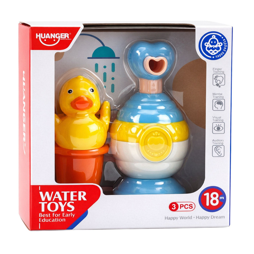 FÜRDŐJÁTÉKOK - POHÁRKACSÁS SZAPPANADAGOLÓ KÉSZLETEz a fürdőjáték-készlet a legkisebb gyermekek számára készült, hogy a fürdést szórakoztató és lebilincselő rituálévá tegye. A készlet tartalmaz egy praktikus poharat víz öntésére, egy klasszikus úszó kacsát és egy funkcionális szappanadagolót, amely habosítja a szappant és buborékokat képez. Ez a játékforma arra ösztönzi a gyerekeket, hogy tovább maradjanak a kádban, csökkenti a fürdéssel járó stresszt, és pozitív asszociációkat alakít ki a napi higiéniával. A szappanadagoló lehetővé teszi a gyerekek számára, hogy megfigyeljék a nyomás és a hab megjelenése közötti kapcsolatot, támogatva az ok-okozati összefüggések kialakulását. A pohár lehetővé teszi a víz öntését, ami elősegíti a finommotoros készségek és a kéz-szem koordináció fejlődését. Az úszó kacsa serkenti a képzeletet és tematikus játékra ösztönöz. A készlet minden eleme tartós és biztonságos műanyagból készült, 18 hónapos kortól alkalmas gyermekek számára. A játékok CE tanúsítvánnyal rendelkeznek, ami igazolja az európai biztonsági szabványoknak való megfelelést. A készlet tökéletes mindennapi használatra és praktikus ajándékként egy kisgyermek számára. MŰSZAKI ADATOK:Anyag: Kiváló minőségű műanyagSzínek: Kék és sárga árnyalataiCél: Fürdési mókaAdagoló funkció: Habzó szappan és habképzésBiztonság: Lekerekített élekTartósság: VízállóTisztítás: Könnyen tisztíthatóAdagoló méretei: 7,6 x 14,8 x 7,3 cmPehely méretei: 5,5 x 5 cmKacsa méretei: 5 x 6,5 x 6,5 cmCsomag méretei: 16,5 x 18 x 8 cmKÉSZLET TARTALMA:FürdőpohárÚszókacsaSzappanadagoló