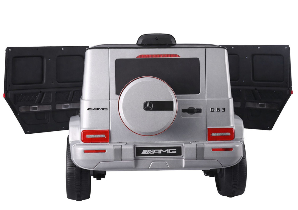 S306-1 Akkumulátoros kisautó, ezüst Mercedes G63 Csomag méretei: 99 cm x 55 cm x 25 cm Súly: 15 kg