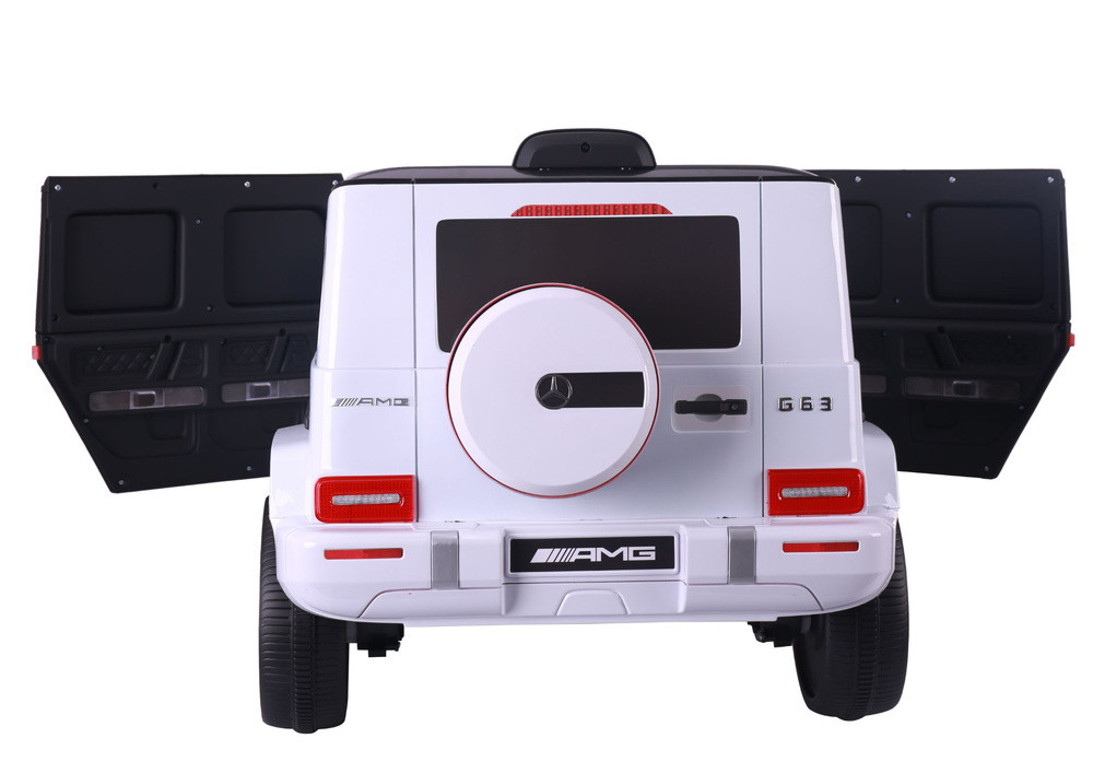 S306-1 Akkumulátoros kisautó, fehér Mercedes G63 Csomag méretei: 99 cm x 55 cm x 25 cm Súly: 15 kg