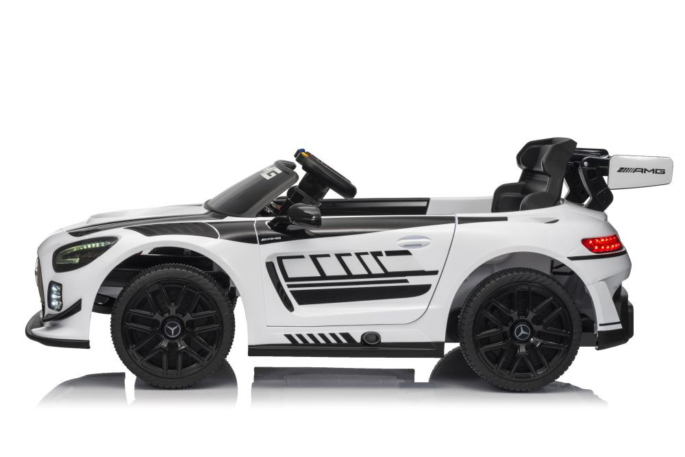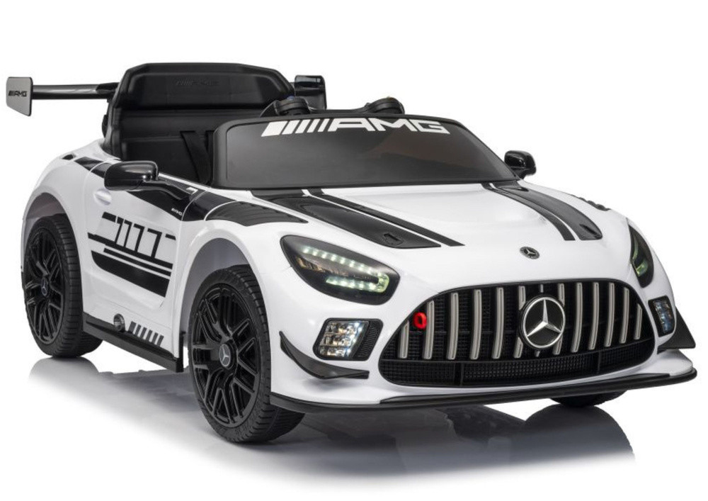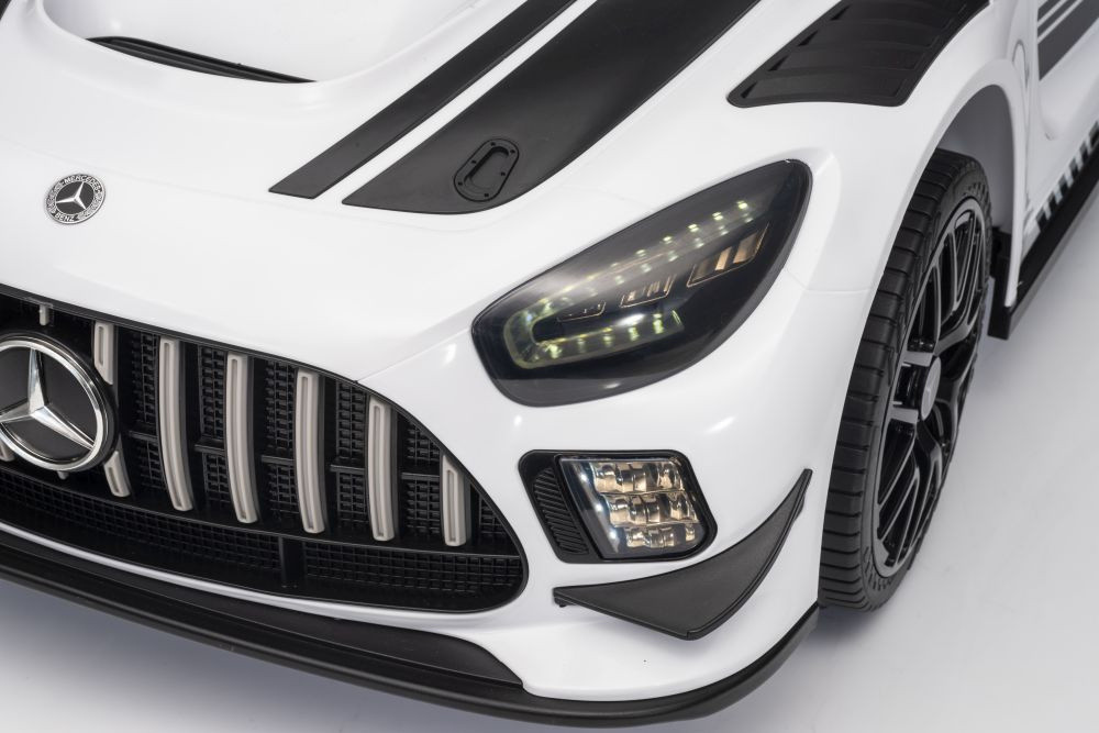 Mercedes AMG GT3 akkumulátoros autó fehér Csomag méretei: 117 cm x 60 cm x 29 cm Csomag súlya: 17 kg