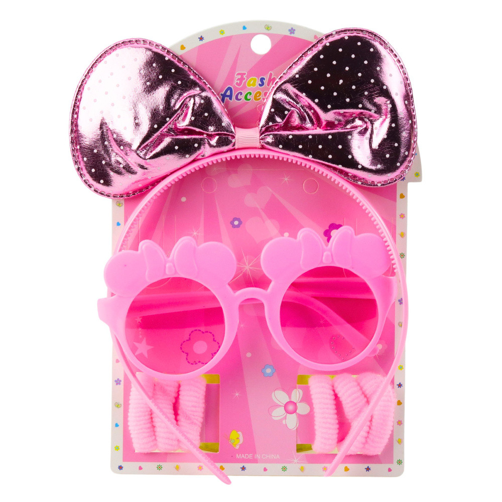 Szépségápolási szett hajpánt masnival, szemüveggel, rugalmas szalagokkal, rózsaszín