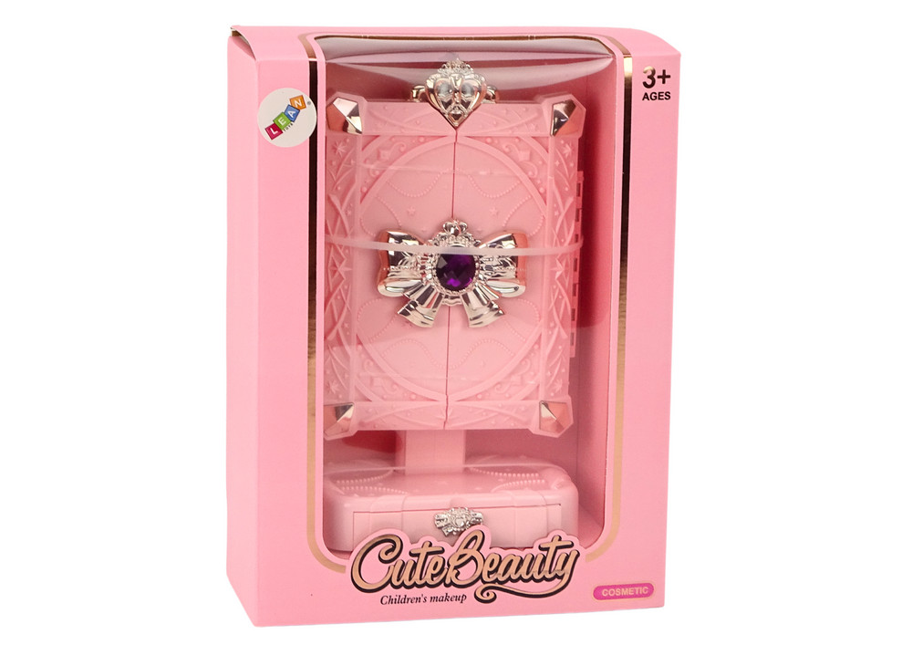 Szépségápolási tükör állványon, állítható rózsaszín. Ez a szépségápolási készlet minden kis szépségrajongó álma! Ez a finom rózsaszín állványos tükör, elegáns ezüst díszítéssel, nemcsak megjelenésével, hanem funkcionalitásával is elbűvölő. A bájos ajtó kinyitásakor egy varázslatos tükör tárul fel, amelyben minden lány igazi hercegnőnek érezheti magát. Belül olyan kozmetikumokat találsz, amelyek a színek és a csillogás világába repítenek. A különböző árnyalatú szájfények bájt kölcsönöznek minden mosolynak, a változatos formájú és színű csillámok pedig segítenek egyedi, varázslatos minták létrehozásában a bőrön. A tükörállvány nemcsak dekoratív, hanem praktikus is, különösen a rejtett kincsek felfedezésekor! A fiók két rúzst tartalmaz, amelyek lehetővé teszik, hogy természetes módon fokozd szépségedet, és egy ecsetet a precíz felvitelhez. És ha a kis művészed a körmeit is kényeztetni szeretné, a készlet két körömlakkot tartalmaz, amelyekkel varázslatos mintákat hozhatsz létre. Az állítható szögnek köszönhetően minden kis művész pontosan a szükséges pozícióba helyezheti a tükröt. Ez biztosítja a kényelmet és a precizitást a napi szépségápolási rutin során. Ez a készlet nemcsak a kreativitást és a művészi készségeket fejleszti, hanem az öngondoskodásra és a testápolásra is tanít, ami már fiatal kortól fontos. Tökéletes ajándék minden kislánynak, aki egyedinek és szépnek szeretné érezni magát. Állvány méretei: 25cm x 13,5cm x 9,5cm. Csomagolás méretei: 29,5cm x 22cm x 10,5cm. CE tanúsítvánnyal rendelkezik és megfelel az EN71 szabványnak. 3 év feletti gyermekek számára alkalmas.