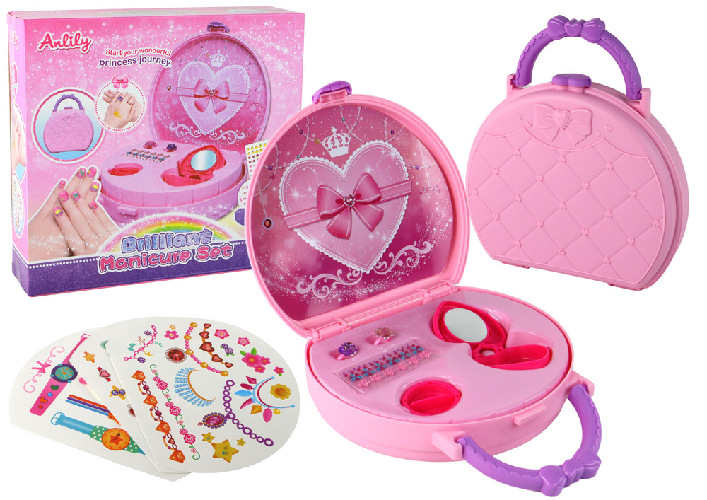 Szépségszett Bőrönd Kiegészítőkkel Gyűrűk Tetoválások Bemutatunk egy kis rózsaszín bőröndöt dekoratív kiegészítőkkel, amely meghív a divat és az önkifejezés világába! Ez a csodálatos készlet tökéletes ahhoz, hogy gyermeke felfedezze a divat világának varázsát és kreativitását. Apró bőröndünk számos varázslatos meglepetést rejt. Felbontás után egy bájos rózsaszín, szív alakú, zárható tükröt talál maga előtt, amely nemcsak a stílusos megjelenés fenntartásában segít, hanem bájt és önbizalmat is ad. Ezenkívül a készlet két gyönyörű gyűrűt is tartalmaz, amelyek egyedi kiegészítői lesznek gyermeke stílusának. A szív alakú flitterek ragyogást és eleganciát kölcsönöznek, ugyanakkor lehetővé teszik, hogy kifejezze egyedi stílusát. A műanyag polc eltávolítása után a bőrönd alján különféle tetoválások rejtőznek órák, nyakláncok, fülbevalók és gyűrűk formájában. Ez egy nagyszerű módja annak, hogy kísérletezzen a különböző mintákkal és divatkiegészítőkkel. Ezenkívül a készlet apró körömmatricákat is tartalmaz, amelyek lehetővé teszik gyermeke számára, hogy eredeti módon díszítse a körmeit. Dekoratív kiegészítőkkel ellátott bőröndünk nemcsak praktikus doboz, hanem inspiráció és szórakozás forrása is. Lehetővé teszi, hogy fejlessze fantáziáját, kísérletezzen a divattal és kifejezze magát különféle kiegészítőkön keresztül. Adjon esélyt gyermekének, hogy felfedezze a divat és a kreativitás világát imádnivaló bőröndünkkel. Rendelje meg most, és hagyja, hogy kibontakoztassa a stílus és a divat iránti szenvedélyét! A csomag mérete: 26cm x 24cm x 6,5cm A bőrönd méretei: 22cm x 20,5cm x 5,5cm CE tanúsítvánnyal rendelkezik és megfelel az EN71 szabványnak. 3 év feletti gyermekek számára készült.