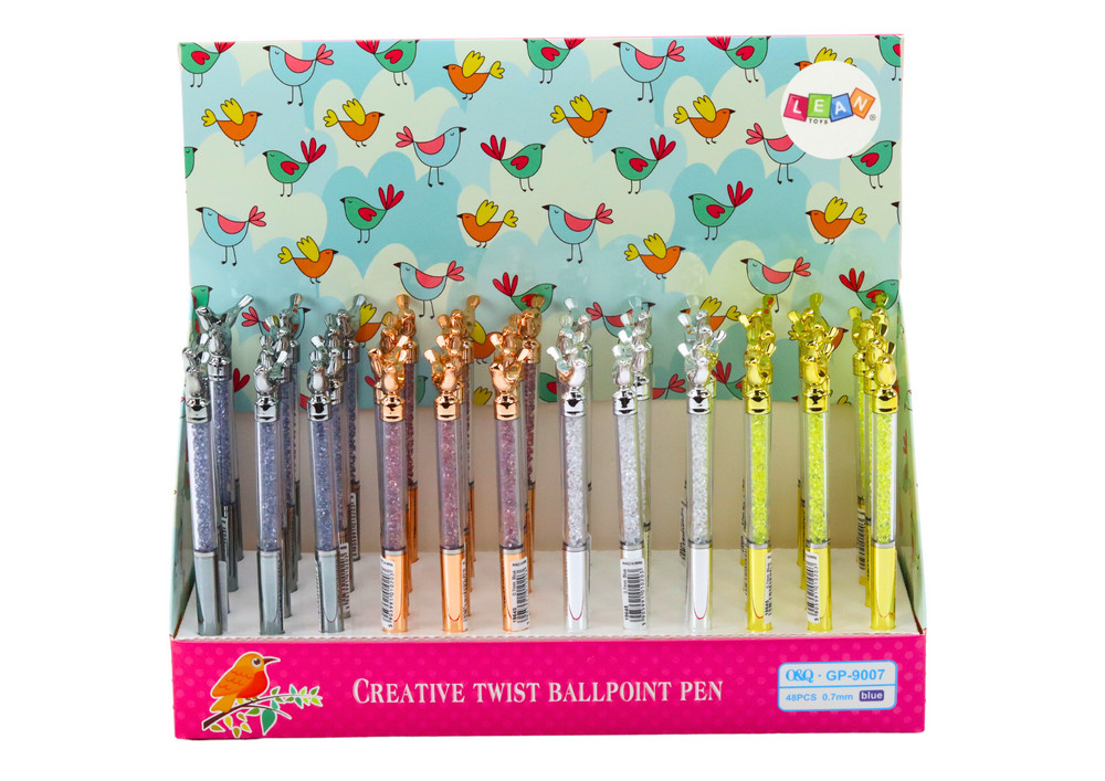 Madaras golyóstoll kék utántöltő 0.7mm mix Ez az elegáns madaras golyóstoll nagyszerű választás azok számára, akik értékelik a finom eleganciát és az egyedi dizájnt. Stílusos madárfigurával díszítve, amely kifinomult bájt kölcsönöz neki, a toll kiemelkedik a hagyományos íróeszközök közül. Átlátszó háza apró gyémántokkal van kitöltve, amelyek finoman csillognak, hatásos fényt hoznak létre és kiemelik a toll luxus jellegét. A toll kényelmet és elegáns megjelenést biztosít. Ideális választás mindennapi használatra és különleges alkalmakra egyaránt. A gyűjtőcsomag 48 tollat ​​tartalmaz. A tollak a következő színekben kaphatók: szürke, piszkos rózsaszín, arany és ezüst. Vásárláskor kérjük, válasszon egy színt. Ellenkező esetben véletlenszerűen kerül kiválasztásra. Toll méretei: 17cm A gyűjtőcsomag méretei: 31cm x 17cm x 11cm CE tanúsítvánnyal rendelkezik, és megfelel az EN71 szabványnak is. 3 év feletti gyermekek számára készült.
