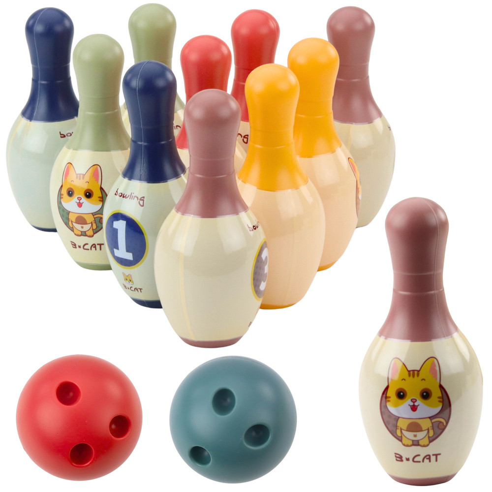 Bowling szett macskákkal gyerekeknek 10 bábu 2 színes golyó
