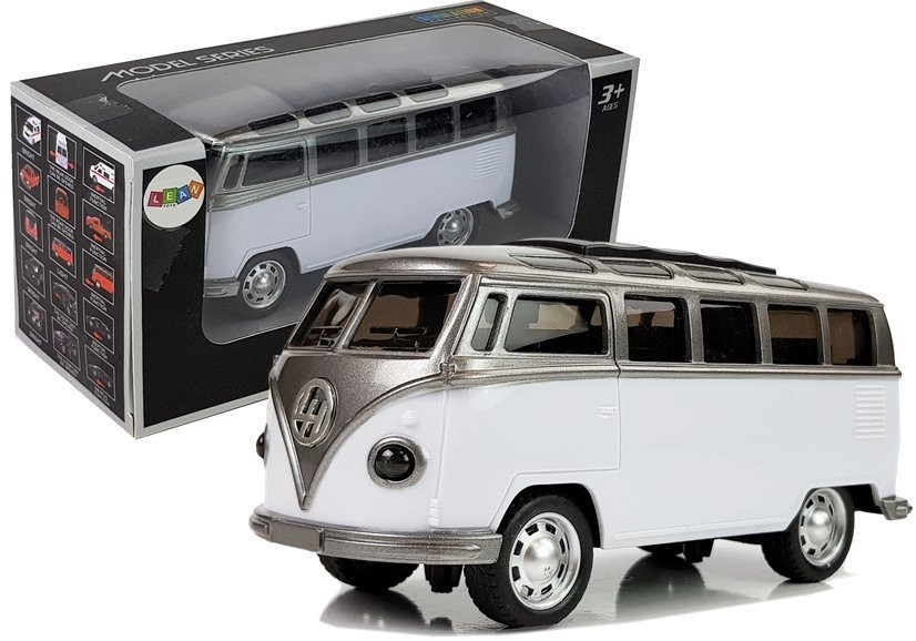 Busz meghajtással és hanggal Fehér Ajándékozzon gyermekének egy nagyszerű ajándékot! Járművünk - egy "uborka" nevű busz - minden autórajongót el fog kápráztatni. Nemcsak a gyermeknek, hanem a felnőttnek is örömet okoz. Segít visszarepíteni a régi időkbe, amikor nekünk is volt ilyen autónk. A visszahúzós busz ellenállás műanyagból készült, gumikerekeken. A játék felébreszti gyermeke nagy kíváncsiságát, ami segít fejleszteni a gyermek képzeletét és befolyásolja annak megfelelő fejlődését. A busz fény- és hangeffektusokkal rendelkezik. Busz méretei: 15 cm x 6,5 cm x 7,5 cm Doboz méretei: 21 cm x 10 cm x 8,5 cm A busz 3 év feletti gyermekek számára készült. A játék CE tanúsítvánnyal rendelkezik és megfelel az EN 71 szabványnak. A busz dobozba és üvegvitrinbe van csomagolva, ami tökéletes ajándék egy gyermeknek.