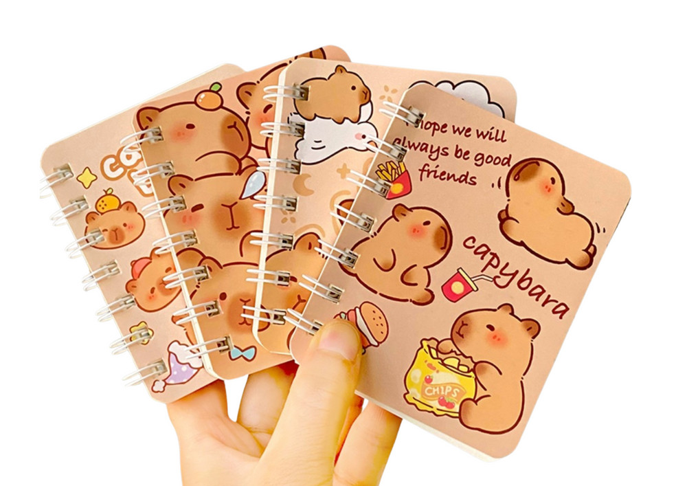 4 db-os vízidisznó vonalas füzetkészlet A7-es méretben. Ez a bájos vízidisznó füzetkészlet egy egyedülálló, 4 darabos készlet, amely elkápráztatja ezen bájos állatok minden szerelmesét. A kompakt, A7-es formátumú (105 x 82 mm) füzetek nemcsak praktikusak, hanem tökéletesek a mindennapi tervezéshez, jegyzeteléshez vagy vázlatkészítéshez is. Mindegyik 80 vonalas oldallal rendelkezik, puha, színes, vízidisznó motívumos borítójuk pedig magára vonzza a figyelmet. Kis méretüknek köszönhetően a füzetek könnyen elférnek egy táskában, hátizsákban vagy akár egy zsebben is, így ideálisak kirándulásokhoz, iskolába, munkába vagy megbeszélésekhez. A készlet 4 füzetet tartalmaz, masszív spirálkötéssel, amely megkönnyíti a lapozást és növeli a tartósságot. A kiváló minőségű papír kiválóan alkalmas írásra és rajzolásra egyaránt. A füzetek ötvözik a bájt és a funkcionalitást, így nagyszerű ajándék szeretteinek, vagy praktikus kiegészítői a mindennapi használatra. A füzet méretei: 10,5 cm x 8 cm, CE tanúsítvánnyal rendelkezik.