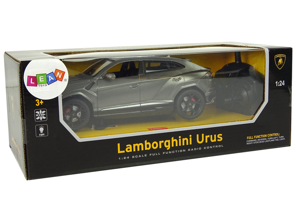 1:24-es távirányítós autó Lamborghini Urus Fekete 2.4 G világítással. Sokak álma, hogy saját autót vehessenek, nemhogy egy sportkocsiról, minden fiú álmodik róla. Bemutatjuk a távirányítós Lamborghini Ursust. Formája és részletei minden autórajongót el fog kápráztatni. A jármű 1:24-es méretarányban készült, minden részletével kidolgozva, aminek köszönhetően hihetetlenül valósághűnek tűnik. A játék segít fejleszteni gyermeked kézügyességét, ügyességét és ravaszságát, valamint javítja a kézfunkciókat, ami biztosan hasznos lesz az iskolában az írásórákon. Sok előnye és nagyszerű szórakozás! A készletben található távirányító 2.4G frekvencián vesz, ami csökkenti az interferenciát játék közben. Két joystick-kal van felszerelve, amelyek az előre és hátra, valamint a jobbra és balra kormányzásért felelősek. A fekete szín kiemeli a járművet a többi közül, továbbá az első és hátsó fényszórók realisztikus hatást keltenek, így úgy fogod érezni magad, mintha egy igazi autót vezetnél. Készlet elemei - 2,4 GHz-es távirányító - lamborghini urus autó. Jármű méretei: 18 cm x 8 cm x 5 cm. A távirányító méretei: 10 cm x 10 cm x 5 cm. Doboz méretei: 30 cm x 14 cm x 11 cm. Az autó három darab 1,5 V-os AA elemmel működik, amelyek nem részei a készletnek. A távirányító 2 db 1,5 V-os "AA" elemmel működik (nem tartozék). A játék 3 év feletti gyermekek számára készült. A készlet CE tanúsítvánnyal rendelkezik és megfelel az EN 71 szabványnak. Átlátszó ablakos kartondobozba van csomagolva, így tökéletes ajándéknak.