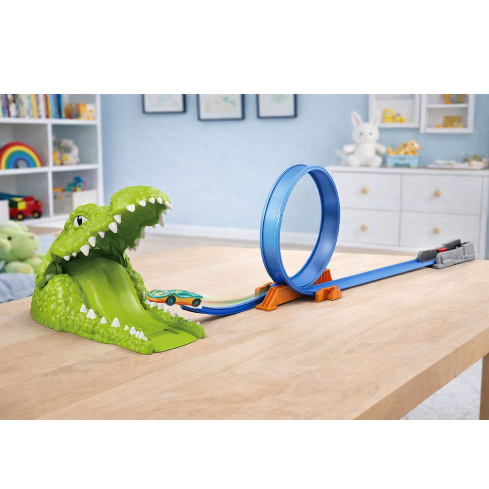 AUTÓPÁLYA KATAPULTTAL ÉS KROKODILLALA katapultos és krokodilos autópálya egy izgalmas játék, amely rengeteg szórakozást és adrenalint nyújt a gyerekeknek. Egy speciális kilövőnek köszönhetően az autó felgyorsul, és végigszáguld a krokodil szájához vezető pályán, garantálva a dinamikus és lebilincselő játékot. A készlet nem igényel elemeket, így könnyen használható és mindig készen áll az akcióra. A színes dizájn és a valósághű állatmotívum tovább serkenti a gyermekek képzeletét, és arra ösztönzi őket, hogy saját versenyhelyzeteket alkossanak.SPECIFIKÁCIÓK:Készlet: autópálya + autóTéma: krokodilCsomag méretei: 35 x 25 x 10 cmTápellátás: nem szükséges elemekA KÉSZLET TARTALMA:AutópályaKrokodil elemAutó