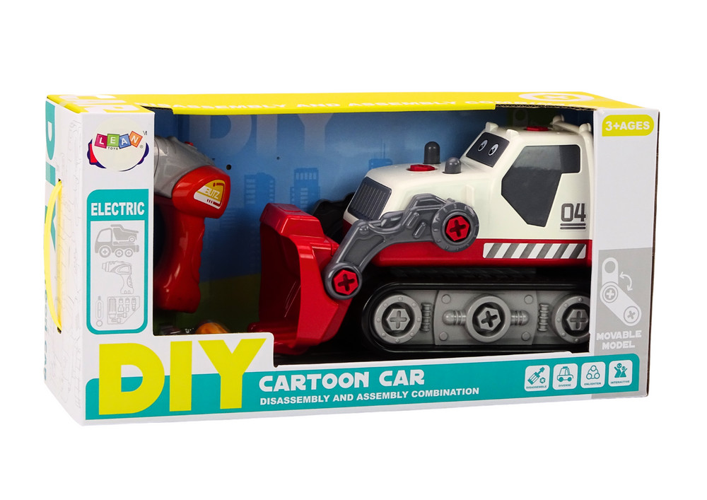 Rajzfilm Lánctalpas Kotrógép Barkácsoláshoz Fehér Egy rajzfilm lánctalpas kotrógép széles szétszerelő kanállal egy rendkívüli játék, amely elrepíti a gyerekeket a mechanika lenyűgöző világába. Fehér és piros színben arra ösztönzi a kis építőket, hogy többet megtudjanak a lenyűgöző jármű titkairól. A mozgatható és állítható kanál interaktivitást és hitelességet kölcsönöz, realisztikus élményt nyújtva a gyerekeknek a kotrógép munkájában. A mellékelt szerszámkészlet - fúró, csavarhúzó, villáskulcs és három cserélhető hegy - szerves részét képezi ennek a játéknak, lehetővé téve a gyerekek számára, hogy önállóan szétszereljék és összeszereljék a járművet. Ennek köszönhetően a gyerekek nemcsak jól érzik magukat, hanem megtanulják, hogyan működik egy kotrógép, miközben fejlesztik kézügyességüket, koncentrációjukat és kreativitásukat. Ez az interaktív tevékenység nemcsak órákig tartó szórakozást nyújt, hanem arra is ösztönzi a gyerekeket, hogy önállóan kísérletezzenek és felfedezzenek. A kotrógép belsejének felfedezésével és a jármű összetett szerkezetének megértésével a gyerekek fejlesztik kíváncsiságukat és kognitív képességeiket. Ez nem csak egy játék, hanem egy oktatási eszköz is, amely segít a gyerekeknek jobban megérteni a technológia és a mechanika világát barátságos és interaktív módon. A fúró 2 db 1,5 V-os AA elemmel működik, amelyek nem részei a készletnek. A kotrógép méretei: 28 cm x 19,5 cm x 13,5 cm. A csomag mérete: 46,5 cm x 23,5 cm x 15 cm. CE tanúsítvánnyal rendelkezik és megfelel az EN71 szabványnak. 3 év feletti gyermekek számára készült.