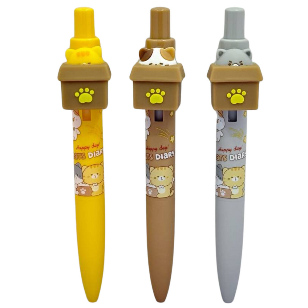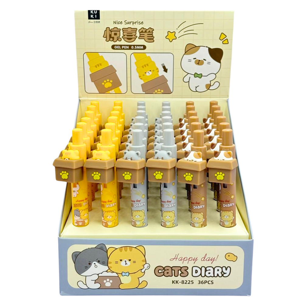 GÉLTOLL MACSKÁVAL Ez a bájos macskamotívumos géltoll tökéletesen ötvözi a funkcionalitást és a figyelemfelkeltő dizájnt. A tok felső részén egy háromdimenziós elem található, amely egy macska orrát ábrázolja, amely kilóg a tollfülkéből, és egyedi bájt kölcsönöz az egésznek. A termék tökéletes iskolába, otthonra vagy irodába egyaránt. A toll kényelmes fogással rendelkezik, jól illeszkedik a kézbe, és simán ír, így öröm vele mindennap használni. Az érdekes minták és pasztellszínek ajándékba vagy iskolai felszerelésbe is remek ötletet adnak. A gyűjtőcsomag 36 darabot tartalmaz. Külön kapható.  A szín véletlenszerűen kerül kiválasztásra. SPECIFIKÁCIÓ: Toll méretei: 14,5 cm Gyűjtőcsomagolás méretei: 20 x 17,5 x 16,5 cm Téma: Macska a fülkében Tinta típusa: Zselés, kék Írásvastagság: 0,5 mm A SZETT TARTALMA: 1 x Géltoll macskával