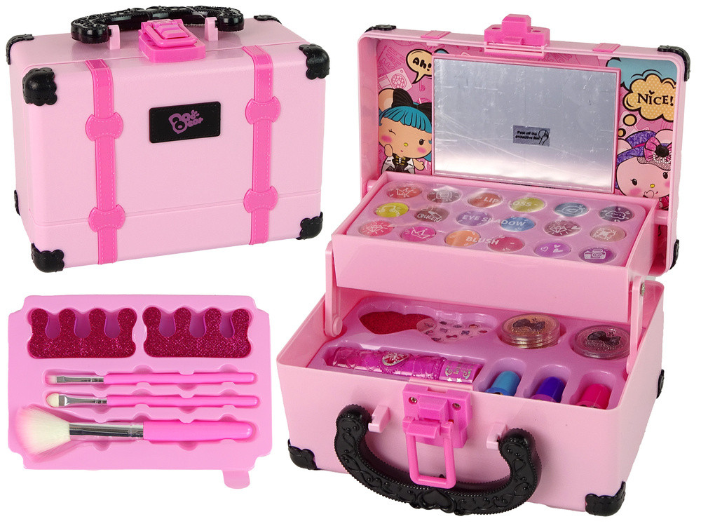 Gyermekkozmetikai készlet Trunk Pink színbenA Rózsaszín Gyermekkozmetikai Láda egy egyedi készlet, amely rendkívüli élményt nyújt a lányoknak a kreatív játékban és a smink világának felfedezésében. A készlet széles termékválasztékot tartalmaz, hogy változatos megjelenéseket alkoss. A készlet 6 szájfényt tartalmaz, hogy szép színeket és ragyogást kölcsönözzön az ajkaknak, és 6 szemhéjfestéket, hogy különböző árnyalatokkal és sminkeffektusokkal kísérletezhess a szemhéjakon. Ezenkívül a készlet 6 arcpirosítót is tartalmaz, hogy finoman ragyogóvá tegye az arcot. A csillogás fokozásához a készlet két csillámport is tartalmaz - aranyat és ezüstöt -, amelyeket az arc vagy a test különböző területeire lehet felvinni az elbűvölő megjelenés érdekében. A szív alakú körömreszelő tökéletes a körmök ápolásához, a körömmatricák pedig lehetővé teszik egyedi minták és dekorációk létrehozását. Három körömlakk kék, lila és rózsaszín színben lehetővé teszi, hogy különböző árnyalatokkal kísérletezzen és divatos körömdíszítéseket készítsen. A rózsaszín rúzs és a rózsaszín szájfény egy tubusban bájos hatást kölcsönöz az ajkaknak. A precíz sminkeléshez a készlet három sminkecsetet tartalmaz, hogy a termékeket precízen felvihesse és különböző effektusokat hozhat létre. Ezenkívül a csillámos körömfestő habok még több mókát nyújtanak a gyerekeknek, hogy megalkossák saját sminkjüket. Ez az imádnivaló rózsaszín láda mini fésülködőasztalként is funkcionál, mivel egy praktikus tükröt is tartalmaz, amellyel a gyerekek megfigyelhetik és tökéletesíthetik sminkelési készségeiket. Rendeld meg még ma ezt a gyönyörű rózsaszín láda kozmetikai szettet, és szerezz gyermekednek felejthetetlen pillanatokat a mókából, a kreativitásból és a személyes stílus felfedezéséből. A készlet elemei: - 6 szájfény, - 6 szemhéjfesték, - 6 pirosító az arcra, - 2 csillámpor (arany és ezüst), - szív alakú körömreszelő, - körömmatricák, - 3 körömlakk (kék, lila, rózsaszín), - rózsaszín rúzs, - rózsaszín szájfény tubusban, - 3 sminkecset - csillámos habok a lábkörmök festéséhez - elegáns tok tükörrel. A láda méretei: 17 cm x 12 cm x 9 cm. A termék CE tanúsítvánnyal rendelkezik és megfelel az EN71 szabványnak. A termék 5 év feletti gyermekek számára alkalmas.