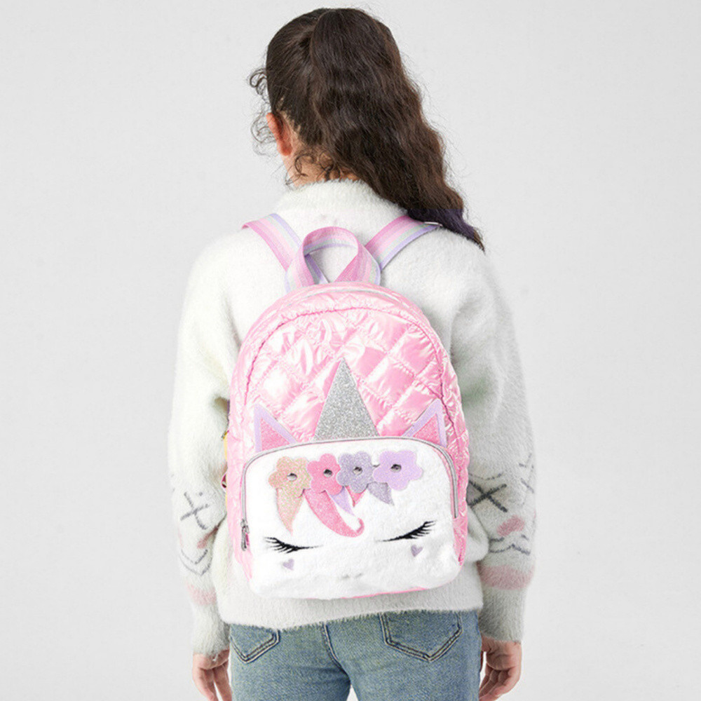 RÓZSASZÍN EGYSZARVÚ HÁTIZSÁK 32 CM Egy bájos gyermek hátizsák unikornis motívummal, visszafogott, rózsaszín színben, nagyszerű választás a mesefigurák és pasztell kiegészítők legfiatalabb rajongóinak. Finom megjelenése, puha textúrája és fényes, steppelt felülete ötvözi a funkcionalitást a kivételes bájjal. A hátizsák kompakt mérete ideális társsá teszi a mindennapi kalandokhoz - az óvodától az iskolán át a sétákig és kirándulásokig. A modell könnyű, de tartós, szennyeződés- és sérülésálló anyagból készült. Az elejét filc applikáció díszíti unikornis motívummal, virágokkal, fülekkel és csillogó szarvval. A hátizsák tágas fő rekesszel, egy kisebb belső zsebbel és egy cipzáras külső zsebbel rendelkezik, amely lehetővé teszi a dolgok kényelmes elrendezését. Az állítható pántok biztosítják a kényelmet és a gyermek magasságához való igazodást. Ez egy praktikus és egyben mesésen szép hátizsák, amely ideális a mindennapi használatra. Nagyszerű ajándék is lehet egy gyermek számára. SPECIFIKÁCIÓ: Méretek: kb. 32 x 24 x 10 cm Anyag: fényes anyag + filc Szín: rózsaszín pasztell elemekkel Rögzítés: cipzár A SZETT TARTALMA: Gyermek unikornis hátizsák