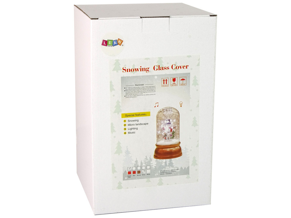 Karácsonyi díszkupola Hó Mikulás Piros  Egy gyönyörű karácsonyi dísz, amely feldíszítheti otthonát a közelgő ünnepekre. Meleg és családias hangulatot teremt otthonában, otthonossá teszi és hozzájárul a karácsonyi szellemhez. Érezze már most a karácsony hangulatát! A tartós műanyagból és üvegből készült karácsonyi dísz minden évben használható, így nagyon gazdaságos választás és hosszú távú vásárlás. A dísz belsejében egy vidám Télapó található egy hintán ülő hóemberrel, hátul egy magas téglakémény található egy karácsonyfával és belőle hulló műhóval. Egy hóval és karácsonyi szimbólumokkal teli világba repítheti magát. Egy belül lévő pumpa szállítja a havat az aljáról, és felülről permetezi, így a hóesés benyomását kelti. A hulló hó mellett hang- és fényfunkcióval is rendelkezik. A téli estéken a fehér fény hozzájárul a hangulathoz, és helyettesíti a kis szoba világítását. A beépített két üzemmódnak köszönhetően választhat, hogy a lámpás különböző színekben világít-e karácsonyi énekekkel együtt, vagy csak a hóesés hatását mutatja dallam nélkül. Ezt a be/ki gomb második megnyomásával módosíthatja. A készlet tartalma: - Karácsonyfadísz - tápegység Az üvegdísz méretei: átmérő 18 cm, magasság 32 cm A csomag méretei: 36 cm x 22 cm x 22 cm 3 év feletti gyermekek számára. EN71 szabványnak és CE tanúsítvánnyal rendelkező játék. A dísz három darab AA 1,5 V-os elemmel vagy hálózati adapterrel működik.