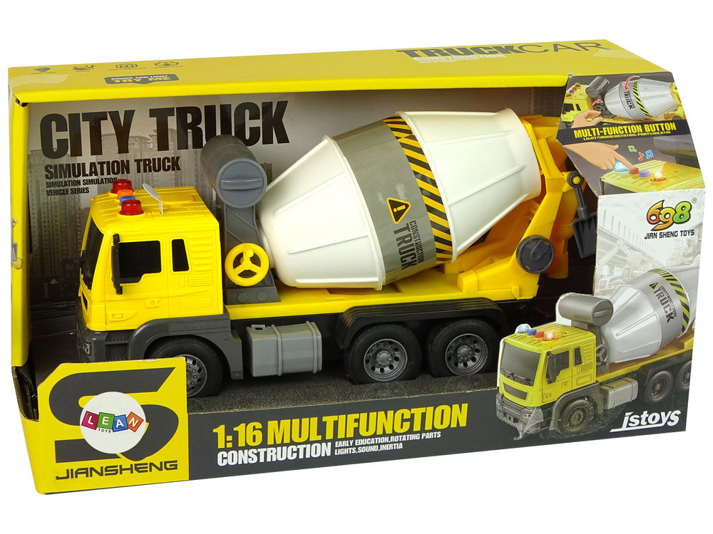 Betonkeverő Sárga Forgó Körte Hangfény ⭐ A betonkeverő egy olyan jármű, amely nem hiányozhat egyetlen építkezésről sem! Ideális fiatal építőknek, akik szeretnének belépni az építőipari munka világába. Realisztikus megjelenésével, mozgó forgó körtével, valamint hang- és fényhatásaival ez az 1:16 méretarányú játék rengeteg szórakozást és készségfejlesztést nyújt. ⭐ FŐBB TERMÉKJELLEMZŐK Mozgatható forgó körte A forgó csúszda és a mozgó körte révén a gyerekek igazi betonkeverő kezelőknek érezhetik magukat. Ideális az építési munkák szimulálására. Realisztikus megjelenés A játék olyan részletekkel van felszerelve, mint a jellegzetes matricák, a technikai elemek utánzatai, amelyek realizmust kölcsönöznek. Hangok és fények A jármű realisztikus vezetési és kürthangokat, valamint villogó figyelmeztető jelzőfényeket bocsát ki a kabinban, ami gazdagítja a szórakozást. Csúszda funkció Mozgatható csúszda jobbra és balra manőverezési lehetőséggel, valamint egy szürke lapáttal, amely lehetővé teszi a "munka megkezdését" az építkezésen. ⭐ SPECIFIKÁCIÓ Jármű méretei: 28 cm x 8 cm x 13 cm Csomagolás méretei: 33 cm x 14 cm x 18 cm Biztonsági tanúsítványok és szabványok: CE, EN71 Felhasználó életkora: 3 éves kor felett ⭐ A SZETT TARTALMA Betonkeverő mozgatható forgó dobbal Hang- és fényjelzések Adagolócsúszda mozgatható lapáttal TOVÁBBI ELŐNYÖK: Biztonság - A játék biztonsági tanúsítvánnyal rendelkezik (CE, EN71). Egyedi dizájn - A betonkeverő realisztikus megjelenése még lebilincselőbbé és oktatóbbá teszi a játékot. Tökéletes ajándékötlet – A készlet esztétikus dobozban, átlátszó vitrinben található, így tökéletes ajándék.