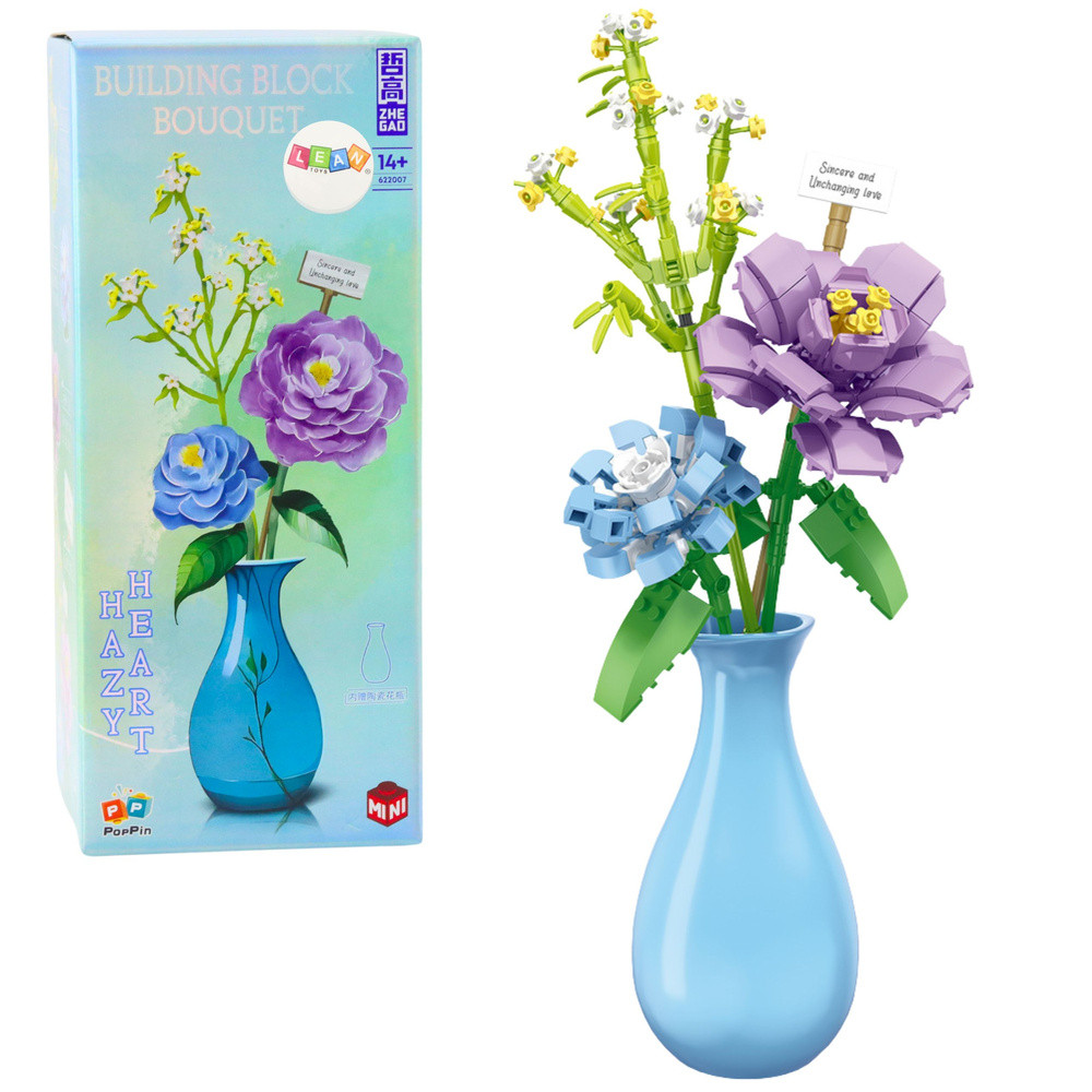 VIRÁGOK A VÁZÁBAN ÉPÍTŐKOCKÁK – 257 DARABOS A VÁZÁBAN Virágok építőkockák egy elegáns készlet, amely lehetővé teszi, hogy gyönyörű virágkompozíciót készíts egy díszes vázában. A készlet 257 darabot tartalmaz, amelyek színes virágokat alkotnak pasztell lila, kék és zöld árnyalatokban. A valósághű részleteknek – szirmoknak, leveleknek és száraknak – köszönhetően az egész igazi virágdekorációnak tűnik. A kész modell nagyszerű kiegészítője lehet bármilyen enteriőrnek – az íróasztalon, polcon vagy asztalon. Ez a kreatív játék és az esztétikai megjelenés tökéletes kombinációja – a kockákból álló csokor soha nem fakul ki, és egyedi megjelenésével mindig gyönyörködtető a szemnek. A készlet megépítése fejleszti a kézügyességet, türelmet tanít, és serkenti a képzeletet. Nagyszerű választás azoknak a gyerekeknek és felnőtteknek, akik szeretnék elkészíteni saját, egyedi dekorációjukat. A kockák kiváló minőségű, biztonságos, éles szélek nélküli műanyagból készültek. Az esztétikus csomagolás tökéletes ajándékká teszi a készletet. MŰSZAKI ADATOK: Darabszám: 257 Anyag: Kiváló minőségű műanyag Színek: Pasztell virágok lila, kék és zöld árnyalatokban, kék váza A kész kompozíció magassága: kb. 25-27 cm Cél: Kreatív játék, lakberendezés, gyűjtés Csatlakoztatás módja: Kompatibilis a hagyományos építőelemekkel Biztonság: Nem mérgező anyagok, nincsenek éles szélek Csomag méretei: 27,5 x 12 x 12 cm A KÉSZLET TARTALMA: 257 darab virágkompozíció építéséhez Váza Illusztrált útmutató Kartoncsomagolás