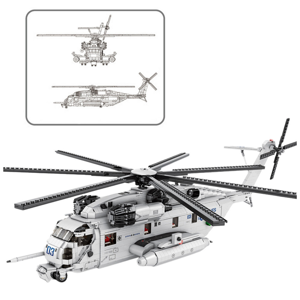 ÉPÍTŐKOCKÁK CH-53 HELIKOPTER A CH-53 szállítóhelikopter realisztikus modellje kiváló választás a katonai repülés rajongóinak, a műszaki konstrukciók és a kockákkal való építés szerelmeseinek. A részletek precíz reprodukciójának, a kiváló minőségű kidolgozásnak és a lenyűgöző méretnek köszönhetően a készlet sok órányi lebilincselő szórakozást nyújt, és nagyszerű dísze lehet bármely gyűjteménynek. A modellt a részletekre való odafigyeléssel tervezték, a nagy teljesítményű CH-53 többcélú helikoptert reprodukálva. Ez a helikopter szállító-, mentő- és harci gépként szolgál, jellegzetes kialakítása pedig a nagy fő- és hátsó rotorral lenyűgöző megjelenést kölcsönöz neki. A készlet 2192 elemből áll, így az összeszerelése igényes és kielégítő projekt. A modell megépítése fejleszti a kézügyességet, a kreativitást és a logikus gondolkodást. A kockák kiváló illeszkedése stabillá és masszívvá teszi a szerkezetet, ami lehetővé teszi a biztonságos hordozást és kiállítást. Elkészülve a modell lenyűgöző méretekkel rendelkezik, így az egyik legnagyobb kockából készült helikoptermodellé válik. A helikopter mozgatható elemekkel van felszerelve, beleértve a forgó propellereket, nyitható ajtókat és realisztikusan reprodukált belső teret, amely lehetővé teszi az interaktív játékot és a különböző konfigurációkban való bemutatást. SPECIFIKÁCIÓ: Elemek száma: 2192 db. Modell méretei: 76,6 cm (hosszúság) x 58 cm (rotor fesztávolság) x 26,8 cm (magasság) Csomag méretei: 43 cm x 28 cm x 10 cm Anyag: kiváló minőségű műanyag Színek: szürke és fehér A SZETT TARTALMA: Téglák a CH-53 modell összeszereléséhez Részletes összeszerelési útmutató Mozgatható elemek: forgó propellerek, nyitható ajtók, valósághű belső tér