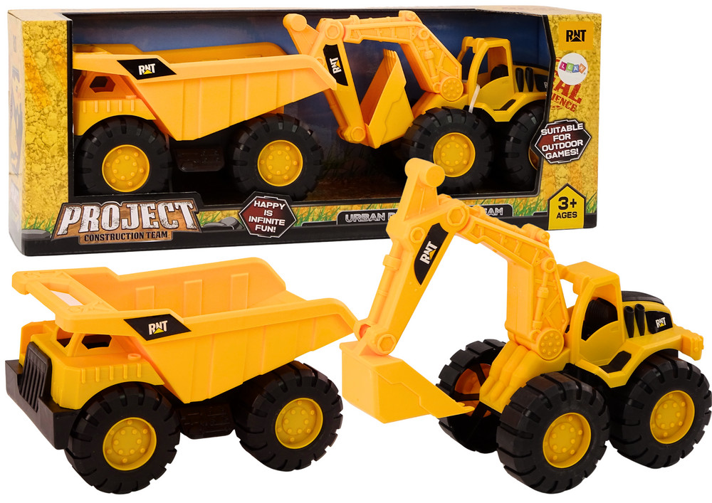 Építőipari gépkészlet kotrógép billenő teherautó mozgatható sárga
