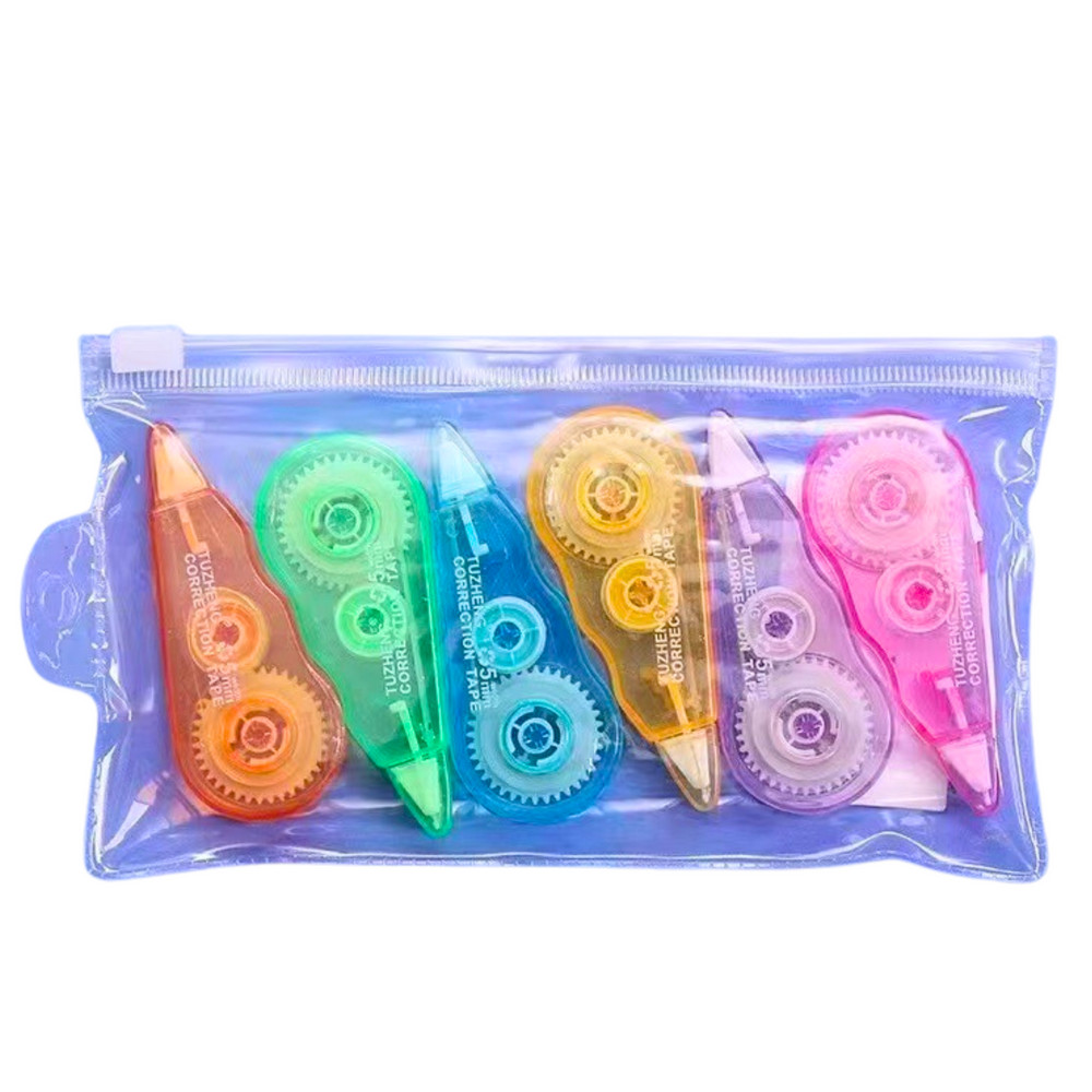 6 DB-OS HIBAJAVÍTÓ SZALAG KÉSZLETEA javítószalag készlet egy praktikus és funkcionális eszköz, amely jól működik mind az iskolában, az irodában, mind otthon. Kompakt méreteinek és kényelmes, cipzáras csomagolásának köszönhetően a javítószalagok tárolása és szállítása rendkívül kényelmes. Mind a hat javítószalagnak más színű tokja van, ami nemcsak a rendszerezést könnyíti meg, hanem esztétikus megjelenést is kölcsönöz nekik.A kényelmes felhelyezési mechanizmus lehetővé teszi a pontos és gyors javítást, nem hagy csíkokat vagy gyűrődéseket a papíron. A javítószalag tartós formulájának köszönhetően a javítások azonnal készen állnak az újbóli írásra. A javítószalagok könnyen használhatók és nem igényelnek száradási időt, ami még hatékonyabbá teszi a dokumentumokkal való munkát.SPECIFIKÁCIÓ:A javítószalagok száma a készletben: 6 darabKorrektor hossza: 7 cmHáz színei: 6 különböző színKorrekció típusa: JavítószalagCsomagolás: Cipzáras a kényelmes tárolás érdekébenCsomag méretei: 16 cm x 9 cm x 1 cmA KÉSZLET TARTALMA:6 x Korrektorszalag1 x Cipzáras csomagolás