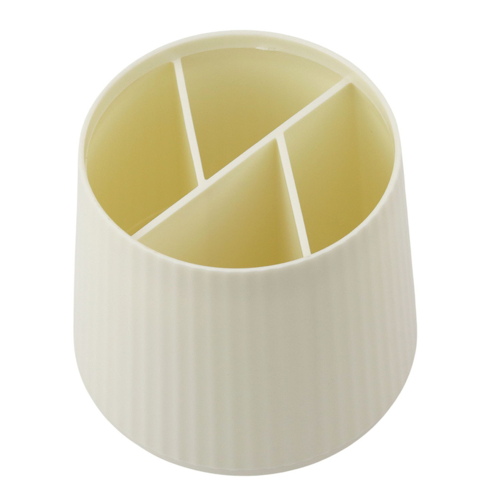 TÖBBFUNKCIÓS RENDSZEREZŐ KOZMETIKUMOKHOZ ÉS IRODAKÉSZÜLÉKEKHEZ – BÉZS Ez a kompakt, rekeszekkel ellátott rendező tökéletes megoldás mind a kozmetikumok, mind az irodaszerek rendszerezésére. Átgondolt belső elrendezésének köszönhetően kényelmesen tárolhatók benne sminkecseteket, rúzsokat, korrektorokat, valamint tollakat, ceruzákat, ollókat, vonalzókat és kiemelőket. A minimalista dizájn elegáns bézs színben tökéletesen illeszkedik a modern enteriőrökbe – tökéletes fésülködőasztalra, fürdőszobába vagy íróasztalra otthon, iskolában vagy irodában. A rendező tartós, karcálló és könnyen tisztítható műanyagból készült. Az egyenletesen elosztott rekeszek lehetővé teszik a kiegészítők kényelmes, kategóriák szerinti rendezését, jelentősen javítva a mindennapi kényelmet. MŰSZAKI ADATOK: Terméktípus: asztali/kozmetikai szervező Használat: kozmetikumok, smink, iskolai és irodaszerek Szín: bézs Anyag: műanyag Rekeszek: 5 különálló rekesz Forma: lekerekített, modern Célja: fürdőszobába, mosdóba, íróasztalra, iskolába és irodába Szervező méretei: 11,5 x 10,5 cm Csomag méretei: 12 x 11,5 x 11,5 cm A SZETT TARTALMA: 1x rekeszekkel ellátott szervező