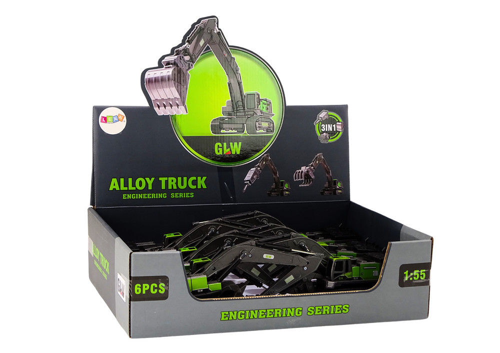 Lánctalpas Kotrógép Fúrótorony Kanál 1:55 Fekete-Zöld Egy fém markolóval, kanállal vagy fúróberendezéssel ellátott lánctalpas kotrógép igazi gyöngyszem a kis építők és az építőgép-rajongók játékai között. Tervezését a legapróbb részletekre is odafigyelve készítették, így rendkívül realisztikusnak és vonzónak tűnik a gyerekek számára. A masszív anyagok, beleértve a fém kotrógép-csúcsokat is, nemcsak hiteles megjelenést biztosítanak, hanem hosszan tartó szórakozást is. A kotrógép kifejező színekben kapható: a mélyfekete kontrasztban áll az intenzív zöld elemekkel, ami dinamikus és vonzó megjelenést kölcsönöz neki. Ezek a színek nemcsak vonzzák a figyelmet, hanem a valódi építőgépekre jellemző szilárdság és erő benyomását is keltik. A játék egyik legérdekesebb aspektusa a gém manipulálásának képessége. Ennek köszönhetően a gyerekek különféle építési forgatókönyveket játszhatnak el. Ez nemcsak a kreatív játékra ösztönöz, hanem fejleszti a finommotoros készségeket és a kéz-szem koordinációt is. Nem feledkezhetünk meg a gumi lánctalphajtásról sem, amely lehetővé teszi a kotrógép simán és pontosan mozogását különböző felületeken. A 360 fokos forgathatóságnak köszönhetően a gyerekek különböző terepeket és építési területeket fedezhetnek fel, ami interaktivitást és dinamikát kölcsönöz a játéknak. A fém elemekkel ellátott lánctalpas kotrógép nemcsak játék, hanem eszköz is a gyermekek képzeletének, kreativitásának és kézügyességének fejlesztésére. A gyűjtőcsomag 6 darabot tartalmaz. A játékok külön kaphatók. A kotrógép típusa véletlenszerűen kerül kiválasztásra. A kotrógép méretei: 26cm x 10cm x 7,5cm A gyűjtőcsomag méretei: 41,5cm x 31cm x 11cm CE tanúsítvánnyal rendelkezik és megfelel az EN71 szabványnak. 3 év feletti gyermekek számára készült.