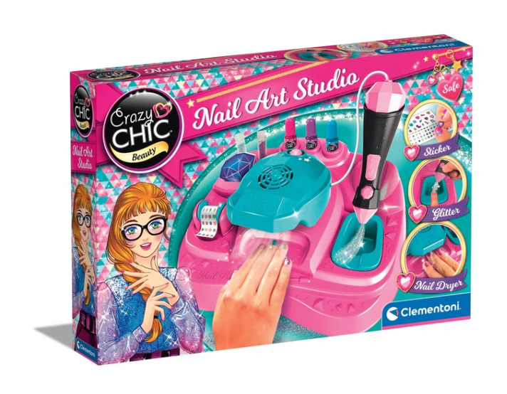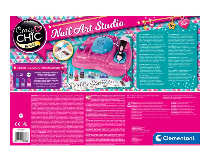 Crazy Chic Crazy Nail Studio Clementoni 18768 A legújabb, innovatív köröm konzol modern és ergonomikus kialakítással – tökéletes a leendő manikűrmesterek számára! A készlet tartalmaz egy csillámos applikátort és egy körömlakk szárítót a divatos, trendi megjelenés garantálásához. Crazy Chic körömlakkokat, körömmatricákat és színes csillámporral érkezik az elbűvölő díszítésekhez! Kreatív, modern és eredeti játék a körmök díszítéséhez, mint egy igazi Crazy Girl! Trendi koncepció, amely serkenti a gyermekek kreativitását és kézügyességét. Ajánlott életkor: 8+ Szükséges elemek: Igen Csomag méretei: 45,1 cm x 31,1 cm x 7 cm