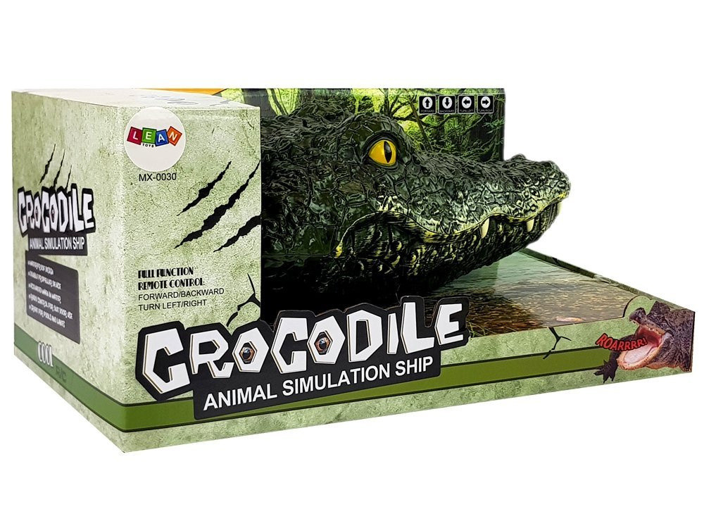 Krokodilfej alakú távirányítós hajó 2.4G hatótávolság 50 m Ez a krokodilfej alakú távirányítós hajó biztosan magára vonzza a tekintetet, egyedi és eredeti játék. Egy hatalmas hüllő, amely a tó egén úszik, és látványától fokozza a félelmet, mostantól az otthonodba való játék. A krokodilfej alakját nagyon valósághűen reprodukálták. Éles és sima fogai, sárga szemei ​​és pikkelyekkel borított zöld bőre egy igazi krokodilt idéz. Ez a változat a lehető legijesztőbb, tökéletes a nyári estéken a tóparton vagy a medencében való játékhoz. A távirányító lehetősége örömet okoz és fejleszti gyermeked kézügyességét. A távirányító 2,4 GHz-es frekvenciájú, így interferencia nélkül működik. A krokodil előre, hátra és oldalra is irányítható. A vezérlési tartomány akár 50 m! Specifikációk: Anyag: műanyag Szín: Zöld Töltési idő: 1 óra Üzemidő: 20 perc Hajó tápellátása: 3,7 V 500 mAh Kor: 6+ Vezérlési tartomány: 50 m Távirányító frekvenciája: 2,4 GHz   Készlet elemei: - távirányítós krokodil - távirányító - használati útmutató - USB töltő   A kiválasztott készlet elemeinek méretei: - távirányítós krokodil: 30 cm x 15 cm x 12 cm - távirányító: 11 cm x 9 cm x 4 cm Doboz méretei: 36 cm x 20 cm x 16,5 cm A játék 6 év feletti gyermekek számára készült. A készlet CE tanúsítvánnyal rendelkezik és megfelel az EN 71 szabványnak. A játék 3,7 V/ 500 mAh elemet tartalmaz, a távirányítót 2 x 1,5 V AA elem táplálja, amelyek nem tartozékok.
