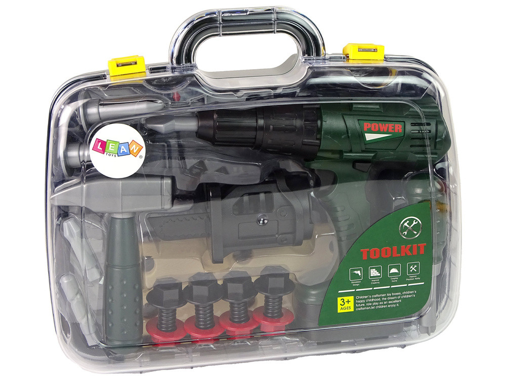 Barkácskészlet bőröndben, elemes csavarhúzóval, zöld színben. Egy otthoni ezermester utánzásának lehetősége biztosan felelősségteljesebbé teszi a kicsiket. Átlátszó tokban található szerszámkészletet kínálunk. A bemutatott készlettel való játék pozitívan befolyásolja a gyermek fejlődését - az okosságát, a logikus gondolkodását, a kreativitását és a kézügyességét. A szedés, csavarozás és kicsavarás rendkívül addiktív, és sokféleképpen fejleszti gyermekét. A szerszámok nevének és céljának megtanulása az egyik előnye a készlettel való játéknak. A teljes készlet egy praktikus hordtáskában található. Belül találhatók a szerszámok, mindegyik műanyagból készült. A csavarhúzó elemmel működik; az elemek behelyezése és a gomb megnyomása után a fúrófej forog, és valósághű hangot is ad ki. A csavarok, anyák vagy egy csavarhúzó jól jöhetnek például két fadarab összeillesztéséhez. Ha nagyobb erőre van szükség, a csavarhúzó a legjobb választás; a cserélhető fúrófejeknek köszönhetően semmi sem okoz túl sok gondot. Amikor a kis barkács elkészült, mindig el tudja tenni őket a helyükre, és gond nélkül magával viheti. A készlet tartalma: - tok - csavarhúzó - csavarhúzó - 4 anya - 4 csavar - fűrész - csavarhúzó - 2 cserélhető fúró - kalapács - villáskulcs - 4 db gipszdübel. Tok méretei: 34 cm x 30 cm x 10 cm. Csomag méretei: 36 cm x 32 cm x 12 cm. A gyártó ajánlása szerint 3 éves és idősebb gyermekek számára alkalmas. CE minősítéssel rendelkezik.