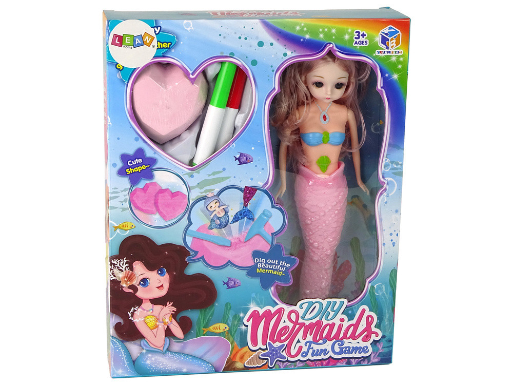 Saját készítésű sellő rózsaszín kincsek ásatási készlet Ez a több darabos, sellővel ellátott készlet fejleszti gyermeked kreativitását és fantáziáját. Játssz a kis sellővel, díszítsd a farkát, és fedezd fel, mit rejt a kis szív alakú kövekben. Az ásatási mókát ötvözheted a művészi készségek fejlesztésével. A készlet két szív alakú követ tartalmaz, mindegyikben egy apró játék található - a szabály egy, a játék megszerzéséhez egy kicsit villognod kell. Vedd a kezedbe a vésőt, és kakaszd fel, hogy megkapd a meglepetést. A sellőnek gyönyörű hosszú haja van, amelyet fésülni vagy befonni lehet. A farkának különleges textúrája van, amelyre könnyen festhetsz a mellékelt filctollakkal. Fesd be a kis hableányt, és keresd meg a nagy labdát. Ne feledd: 3 óra elteltével merítsd vízbe a sellőt, és újra festheted. A készlet elemei: - rózsaszín sellő - sellőfarok - 4 különböző színű toll - véső - 2 szív alakú kő Sellő méretei: 32 cm x 8 cm 5 cm Csomag méretei: 32 cm x 26 cm x 7 cm A játék gyártása az EN 71 szabványnak megfelelően történik. A játék 3 éves és idősebb lányok számára alkalmas.