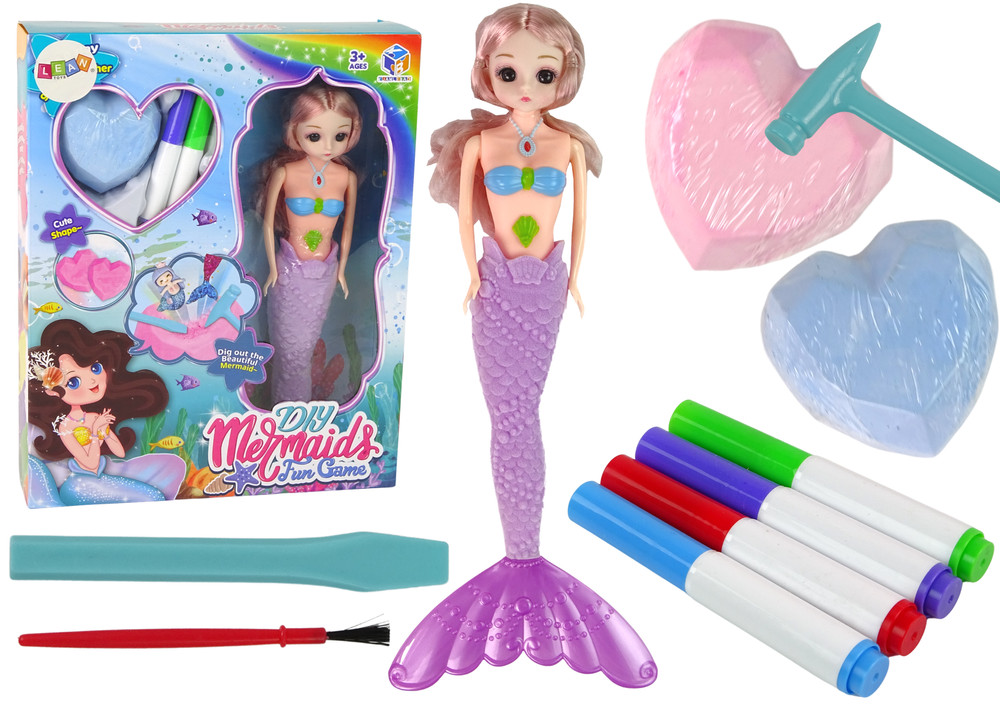 Saját készítésű sellő lila kincsek ásatási készlet Egy több darabos, sellővel ellátott készlet fejleszti gyermeked kreativitását és fantáziáját. Játssz a kis sellővel, díszítsd a farkát, és fedezd fel, mit rejt a kis szív alakú kövekben. Az ásatási mókát ötvözheted a művészi készségek fejlesztésével. A készlet két szív alakú követ tartalmaz, mindegyikben egy apró játék található - a szabály egy, a játék megszerzéséhez egy kicsit villognod kell. Vedd a kezedbe a vésőt, és kakaszd fel, hogy megkapd a meglepetést. A sellőnek gyönyörű hosszú haja van, amelyet fésülni vagy befonni lehet. A farka különleges textúrájú, amelyre könnyen festhetsz a mellékelt filctollakkal. Fesd be a kis sellőt, és keresd meg a nagy labdát. Ne feledd: 3 óra elteltével merítsd vízbe a sellőt, és újra festheted. A készlet elemei: - lila sellő - sellőfarok - 4 különböző színű toll - véső - 2 szív alakú kő Sellő méretei: 32 cm x 8 cm 5 cm Csomag méretei: 32 cm x 26 cm x 7 cm A játék gyártása az EN 71 szabványnak megfelelően történik. A játék 3 éves és idősebb lányok számára alkalmas.