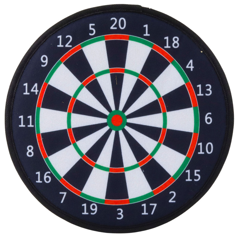 TÉPZÁRAS DARTS TÁBLA GOLYÓVAL ÉS NYÍLLYAL – KLASSZIKUS VÁLTOZAT Ez a tépőzáras darts tábla nagyszerű választás gyerekeknek és az egész családnak. A klasszikus pontozási rendszer (1-20) a professzionális darts táblákra emlékeztet, de a legfiatalabb játékosokat szem előtt tartva tervezték – könnyű, puha és teljesen biztonságos. A készlet tartalmaz egy 28 cm átmérőjű sötét színű darts táblát, egy dartsot és egy golyót, mindkettő tépőzáras. A tábla egyértelmű számozással és színkódolt zónákkal rendelkezik, amelyek megkönnyítik a számolás tanulását, valamint a reflexek és a pontosság fejlesztését. Könnyű anyagainak és biztonságos konstrukciójának köszönhetően ez a készlet tökéletes beltéri és kültéri használatra egyaránt. Akasztható kampóra, szögre vagy a mellékelt tartóra – azonnal használatra kész. MŰSZAKI ADATOK: • Típus: Klasszikus tépőzáras darts tábla • Darts tábla átmérője: 28 cm • Anyag: Szövet + tépőzár + műanyag • Színek: Fekete és fehér piros és zöld díszítéssel • Kialakítás: Klasszikus darts tábla 1-20 pontozással • Rögzítés: Akasztható A SZETT TARTALMA: • Darts tábla tépőzárral – 1 db. • Tépőzáras labda – 1 db. • Tépőzáras nyíl – 1 db.