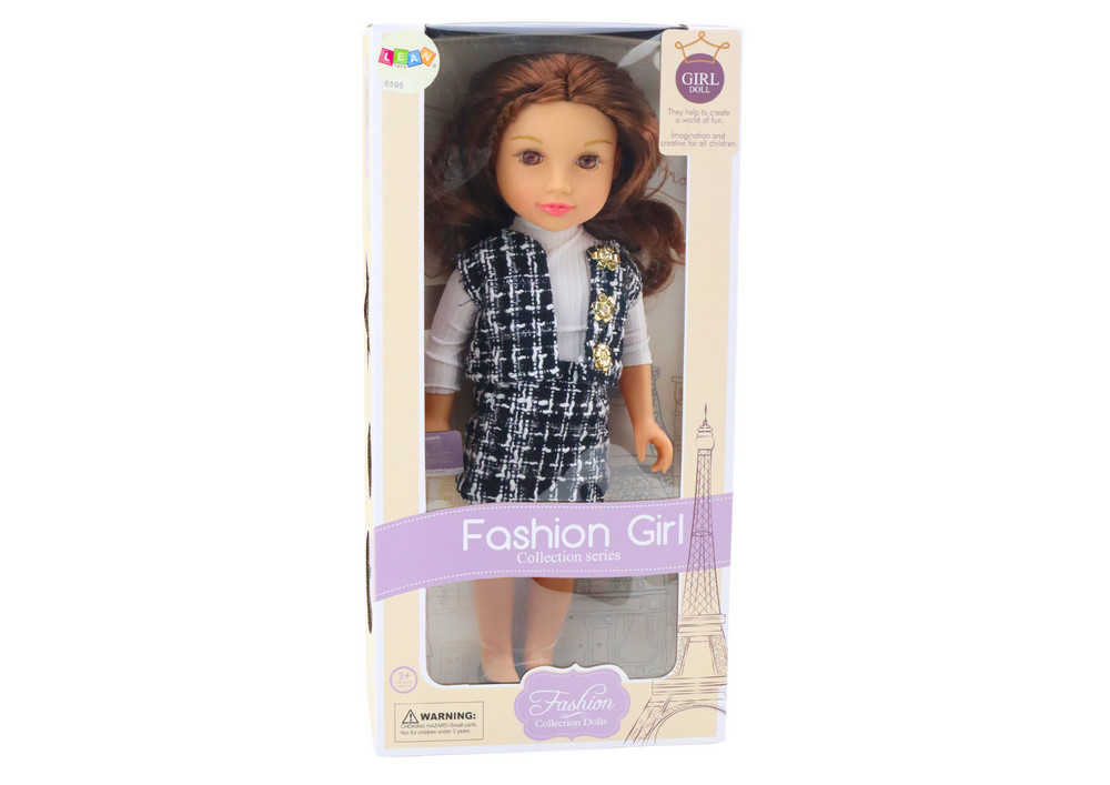 ELEGÁNS RUHÁKBAN TALÁLHATÓ BABA  Egy hosszú barna hajú, stílusos kockás ruhájú baba tökéletes játék minden lány számára, aki szereti a divatot, a formázást és az egyedi frizurák készítését. Dús, hosszú haja tökéletes a fésülködéshez és a formázáshoz, ami lehetővé teszi a kreatív játékot és a kézügyesség fejlesztését. A baba ruhái az eleganciát ötvözik a modern stílussal - a fekete-fehér kockás szoknya és a mellény egyedi karaktert kölcsönöz neki. A hosszú ujjú fehér blúz teszi teljessé a stílust, klasszikus és időtlen megjelenést kölcsönözve neki. A ruhatár minden elemét a részletekre való odafigyeléssel tervezték. A ruhatár egyes részeinek fel- és levételének lehetősége fejleszti a gyermek motoros koordinációját és önállóságra tanít. A baba tökéletes stylist, divattervező vagy fodrász szerepére, lehetővé téve a gyerekek számára, hogy különféle forgatókönyveket játsszanak el - a mindennapi helyzetektől az exkluzív bulikig. Ez a tökéletes ajándék egy olyan lánynak, aki szereti a gyönyörű babákat, és játékon keresztül szeretné fejleszteni képzeletét és képességeit. Kiváló minőségű kidolgozásának és elegáns kialakításának köszönhetően a baba kedvenc játszótársává és a gyermek gyűjteményének egyedi elemévé válik. SPECIFIKÁCIÓ: Baba méretei: 44 cm x 18 cm x 10 cm Csomag méretei: 48 cm x 24 cm x 12,5 cm Hajszín: Barna, hosszú, dús - tökéletes a formázáshoz Öltözék: Kockás szoknya és mellény, fehér hosszú ujjú blúz Anyag: Biztonságos műanyag és szövet SZETT TARTALMA: Baba elegáns kockás ruhában Stílusos cipők