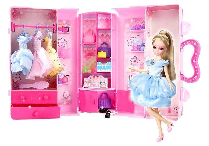 Baba, modell. Ruhakészlet. Öltözködés. Ékszerek egy bőröndben.