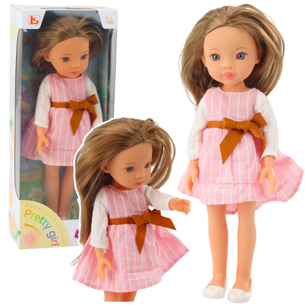 CSINOS LÁNY BABA RÓZSASZÍN CSÍKOS RUHÁBAN 32 CM Ez a bájos Pretty Girl baba ideális választás azoknak a lányoknak, akik szeretik a játszóházat, a gondoskodást és a divatot. A baba gondosan megformált arccal, finom mosollyal, nagy szemekkel és sima, világosbarna frizurával vonzza a figyelmet. A haja puha és kellemes tapintású, ideális fésüléshez és formázáshoz. A baba fehér csíkos, hosszú fehér ujjú és derekán díszes barna masnival díszített rózsaszín ruhát visel, ami eleganciát és lányos bájt kölcsönöz neki. A stílust klasszikus, fehér cipők egészítik ki. A ruha levehető, így a baba alkalmas jelmezezésre és saját divatkreációk készítésére. A mozgatható karoknak, lábaknak és fejnek köszönhetően a babával nagyon kényelmes játszani - ülhetsz rajta, pózolhatsz és különböző jeleneteket játszhatsz el vele. Tartós, biztonságos műanyagból készült, könnyű és ellenáll a mindennapi használatnak. Nagyszerű játszótárs otthon, utazás közben és az óvodában. A baba esztétikus dobozba van csomagolva, így nagyszerű ajándékötlet minden lány számára. SPECIFIKÁCIÓ: Típus: Divatos baba Baba magassága: 32 cm Anyag: Műanyag Ruházat: Rózsaszín csíkos ruha fehér ujjakkal + barna masni + fehér cipő Mozgatható elemek: Kezek, lábak, fej Csomag méretei: 34 x 13,5 x 8,5 cm SZETT TARTALMA: 1 x Pretty Girl baba 32 cm
