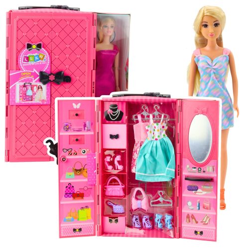 RÓZSASZÍN RUHÁKKAL, RUHÁKKAL ÉS KIEGÉSZÍTŐKKEL RENDELKEZŐ BABA Ez a rózsaszín ruhákkal és kiegészítőkkel teli szekrényű baba tökéletes választás a divatot és a stílust kedvelő gyerekek számára. Ez a készlet lehetővé teszi, hogy felöltöztesd a babát, elkészítsd saját ruháidat, és eljátszd a mindennapi életből vett jeleneteket. A szekrény nyitható ajtókkal, tükörrel és kiegészítőkkel teli polcokkal rendelkezik. A készlet színes ruhákat, cipőket, vállfákat és kézitáskákat tartalmaz, így változatosabbá teheted a játékot és egyedi öltözékeket alkothatsz. Ezzel a kiterjedt kollekcióval a baba bármilyen alkalomra készen állhat – egy sétától egy elegáns buliig. A baba kiváló minőségű anyagokból készült, a kiegészítők pedig aprólékosan kidolgozottak. Nagyszerű ajándékötlet, amely fejleszti a gyermek kreativitását és esztétikai érzékét. MŰSZAKI ADATOK: Baba méretei: magasság 30 cm, hosszúság 7 cm, szélesség 5 cm Gardróbszekrény méretei: hosszúság 19 cm, magasság 31 cm, szélesség 8 cm Csomagolás méretei: hosszúság 26 cm, magasság 32 cm, szélesség 8 cm Kiegészítők: ruhák, cipők, vállfák, kézitáskák, tükör A SZETT TARTALMA: Baba 30 cm Rózsaszín ruhásszekrény 2 ruha Akasztók Cipők Kézitáskák Tükör Eredeti csomagolás