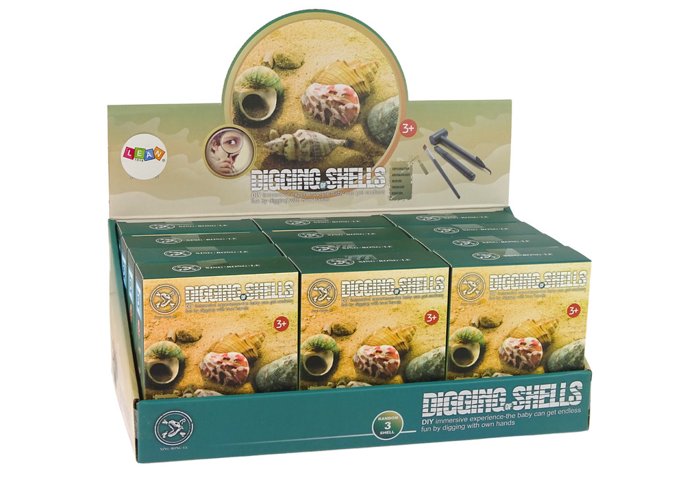 KAGYLÓFELFEDEZŐ KÉSZLET - HÁROM MODELL - OKTATÓ RÉGÉSZETI JÁTÉK GYERMEKEKNEK Minden gyermek szeret titkokat felfedezni és a világot felfedezni. A Kagylófelfedező Készlet egy egyedülálló oktatójáték, amely lehetővé teszi számukra, hogy egy kis régész szerepét öltsék magukra, és egy gipsztömbben elrejtett kincseket fedezzenek fel. A játék során a gyerekek fejlesztik kíváncsiságukat, precizitásukat és kézügyességüket, miközben megismerkednek a puhatestűek és héjaik lenyűgöző világával is. A készlet három véletlenszerű kagylót tartalmaz, amelyeket a mellékelt eszközök segítségével önállóan kell kiásni. Minden kagylónak más formája és jellegzetes tulajdonságai vannak – a gyerekek találhatnak egy fésűkagyló-héjat, egy zöld csigát, egy durvát csigát, egy fekete ajkú csigát vagy egy vörös árnyalatú kagylót. Nagyszerű módja annak, hogy elkezdjék saját gyűjteményüket, és megtanulják azonosítani a fajokat. Az ásatás nemcsak nagyszerű szórakozás, hanem türelemre, precizitásra és a régészet alapjaira is tanít. A praktikus kiegészítőknek köszönhetően a kicsi igazi felfedezőnek fogja érezni magát. A többcsomagos csomag 12 darabot tartalmaz. Külön kapható. MŰSZAKI ADATOK: Játéktípus: Oktató ásatási készlet - Kagylók Tartalom: 3 véletlenszerű kagyló, véső, ecset, kalapács, gipsz és dinoszaurusz alakú szivacs Funkciók: Fejleszti a kézügyességet, tanít a türelemre, és tanul a kagylófajokról Kagyló modellek: Fésűkagyló, Zöld csiga, Turridae, Fekete ajkú csiga, Piros alakú csiga Gipsz méretek: 10 x 8 x 3 cm Csomag méretei: 14 x 12 x 5 cm Anyag: Gipsz, műanyag, természetes kagylók Cél: Oktató játék gyerekeknek Csomagolás: Színes doboz KÉSZLET TARTALMA: 3 kagyló (véletlenszerű modellek) Gipsz felfedező blokk Kalapács Véső Ecset Dinoszaurusz alakú szivacs
