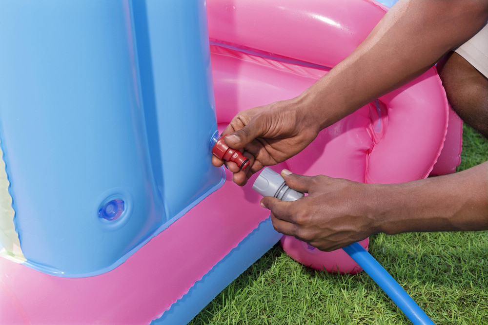 Varázslatos Disney Hercegnők Vízi Játszóközpont – az öröm és a kalandok földje. Merülj el egy mesevilágban, tele vízi attrakciókkal és felejthetetlen szórakozással. A Disney Hercegnők Vízi Játszóközpont a tökéletes hely a kis hercegnők és hercegek számára, akik imádják a pancsolást, a kalandokat és az aktív szabadtéri szórakozást. Látnivalók és jellemzők: Vízi csúszda és ív Dobójáték Gyűrűdobálós játék a kis sellővel Színes labdák és felfújható gyűrűk Praktikus leeresztő szelep Masszív konstrukció tartós PVC-ből Műszaki adatok: Felfújt méretek: 221 x 193 x 140 cm Leeresztett méretek: 230 x 185 cm Űrtartalom: 160 liter víz Maximális terhelés: 45 kg Anyag: PVC Ajánlott életkor: 2 éves kortól
