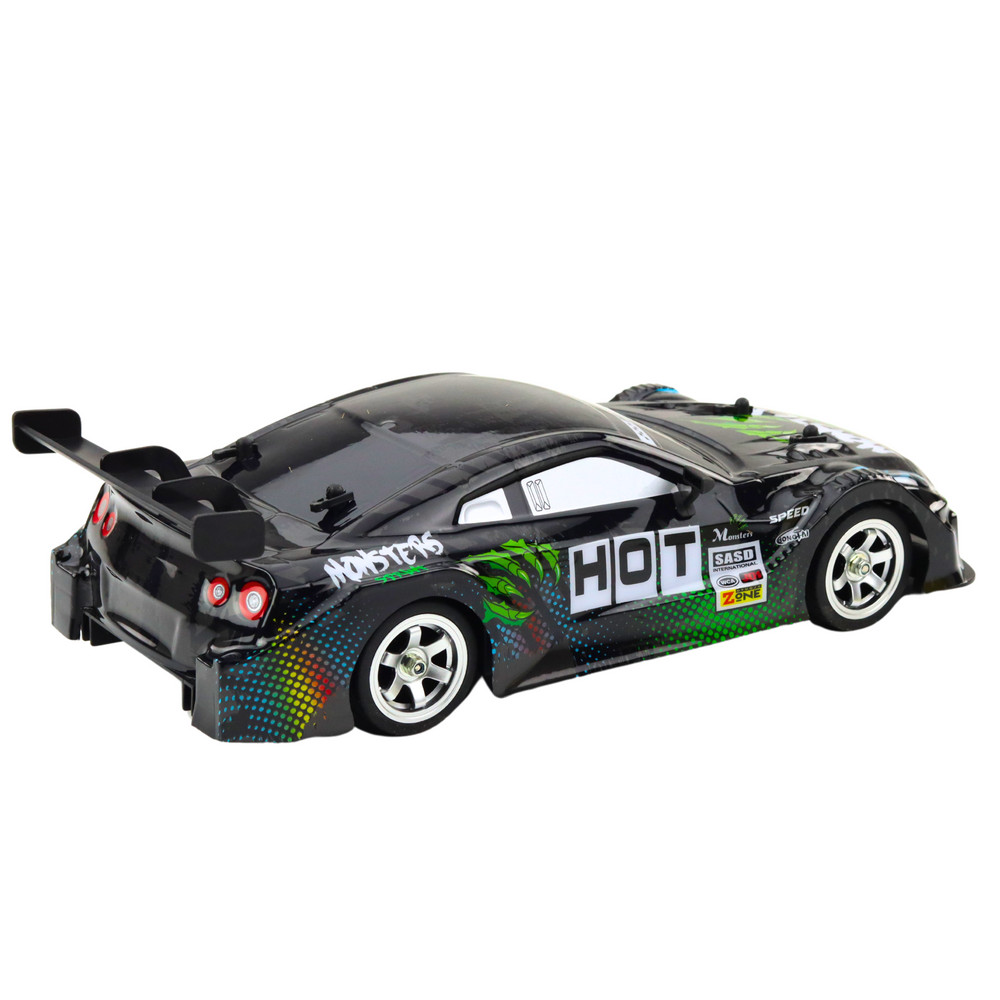 Drift autó távirányítós fekete zöld 30km/h 1:16